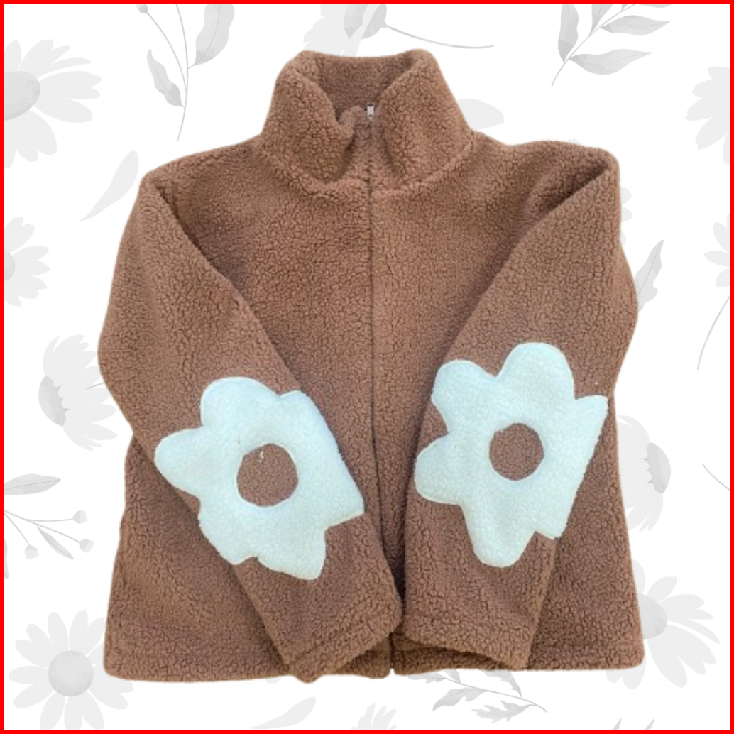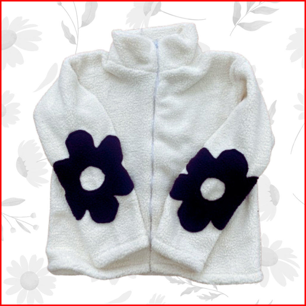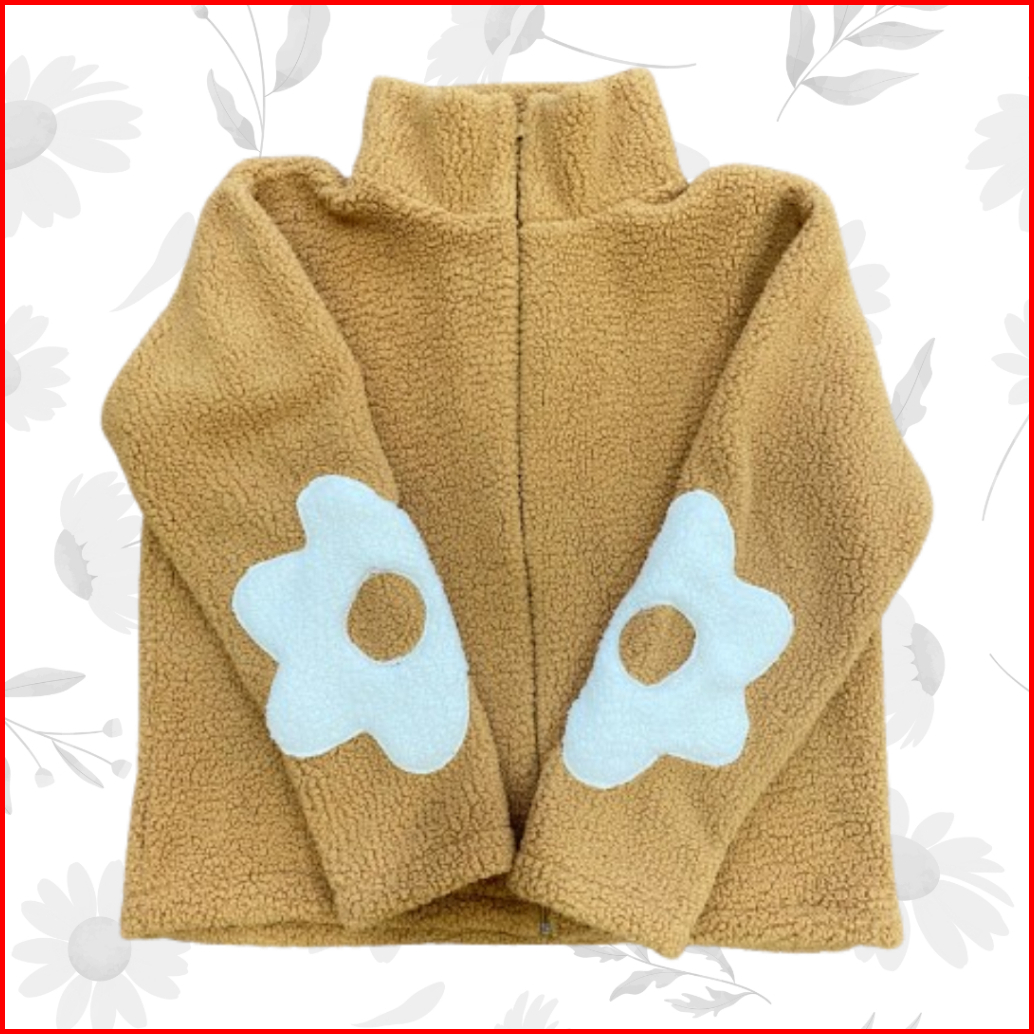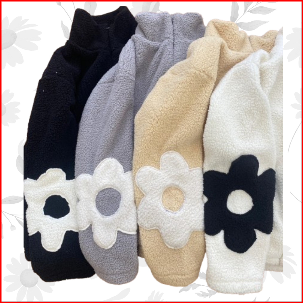 Sweater Wanita Sherpa Zipper Daisy