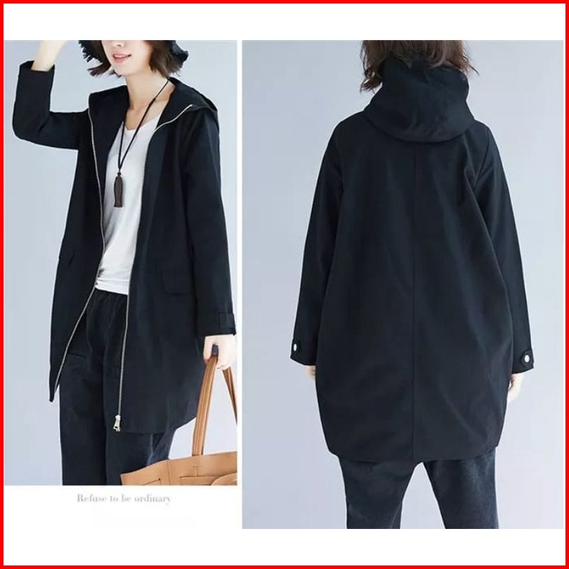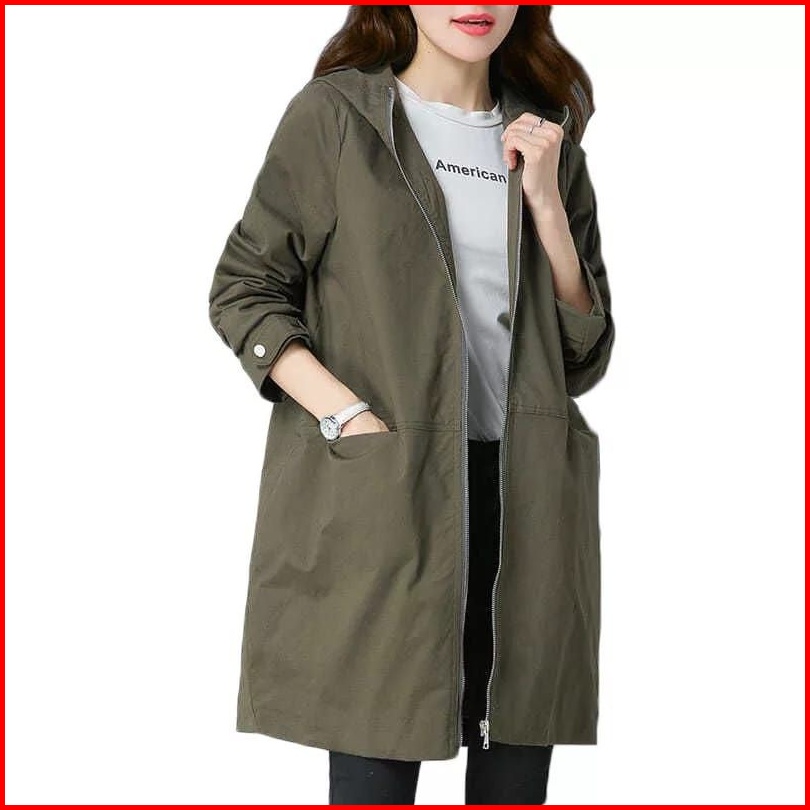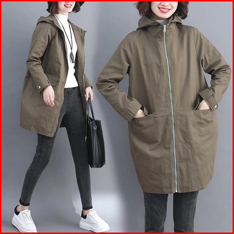 Jaket Wanita Bahan Katun American Drill Jaket Panjang Long Wanita Korea Terbaru Jaket Hoodie Wanita Katun Panjang Jaket