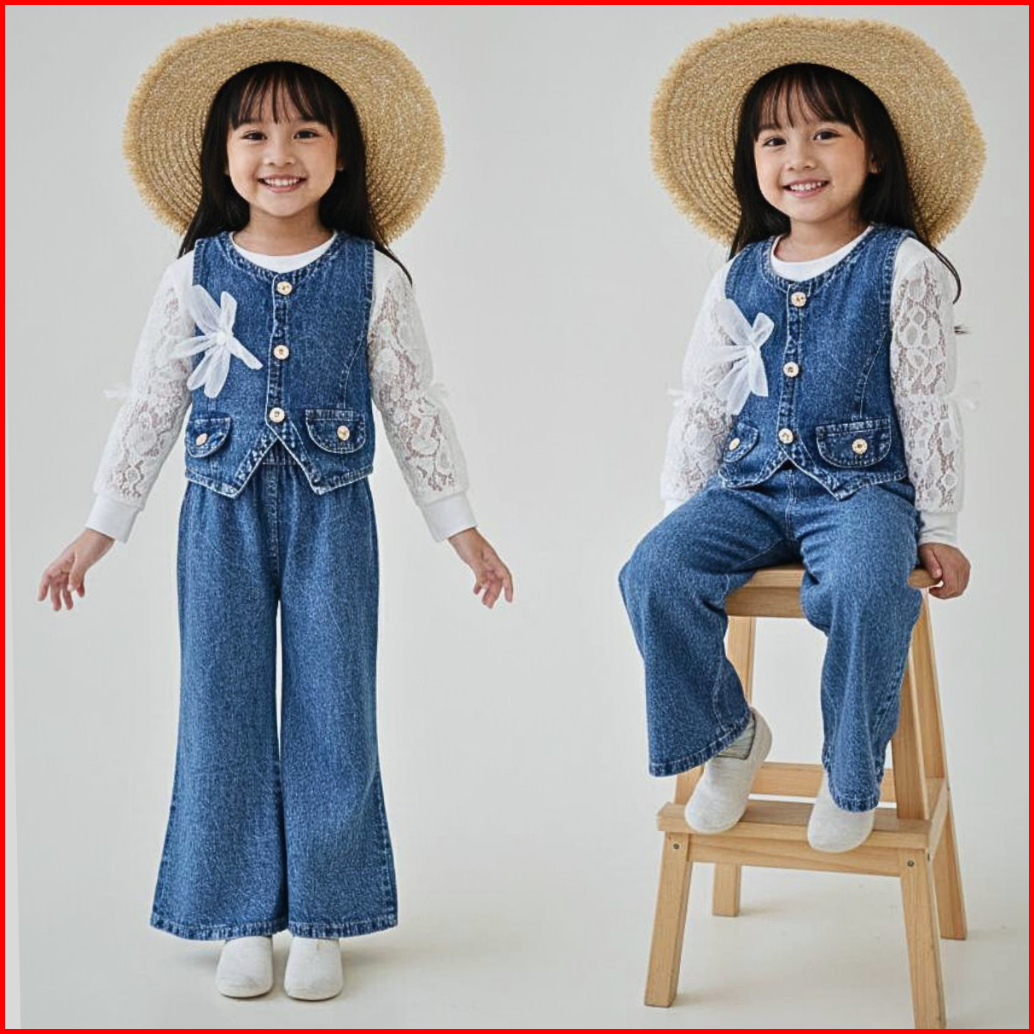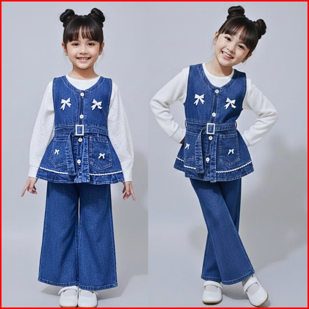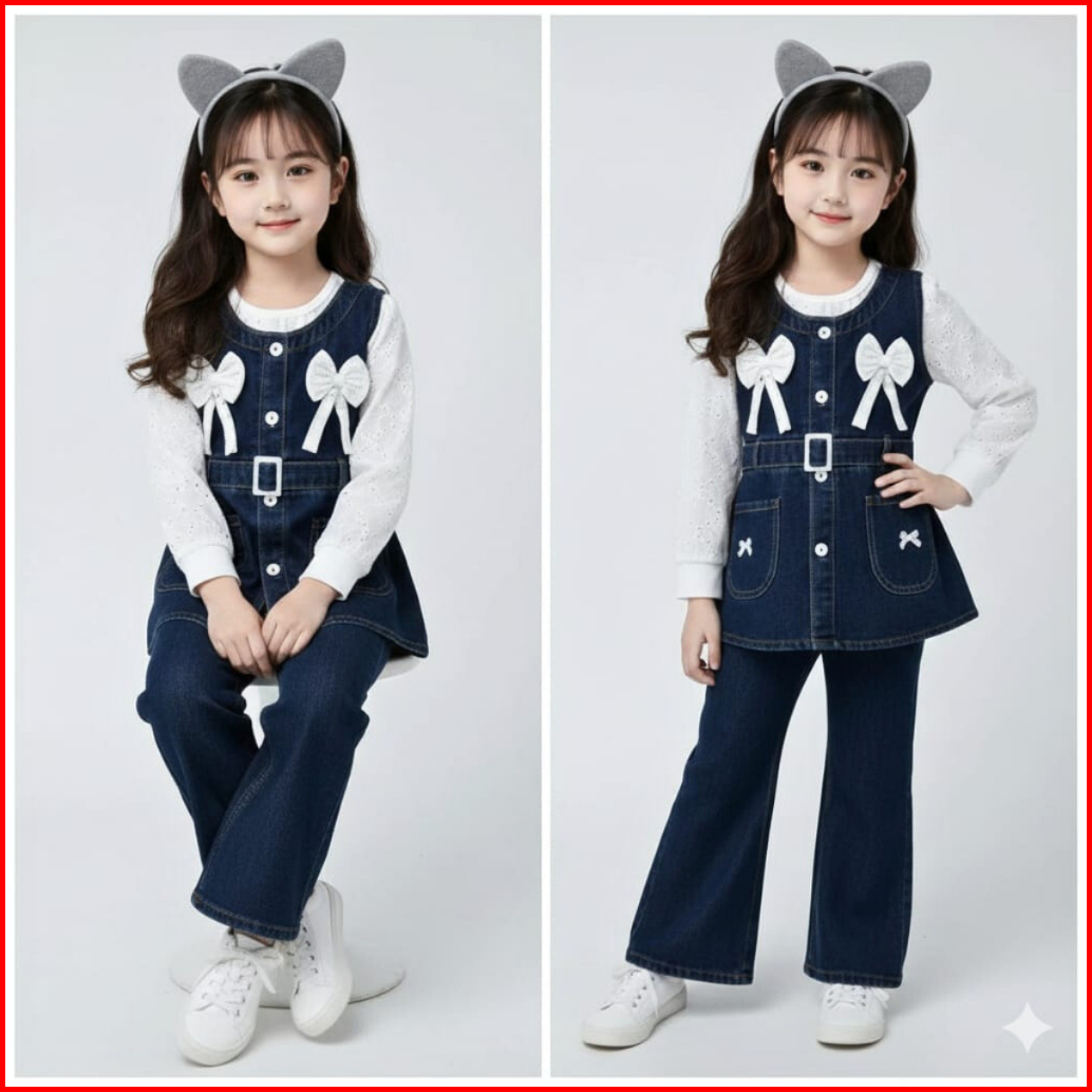 Stelan Jeans Lengan Panjang Anak Perempuan Terbaru 2026 Celana Jeans Cutbray Usia 3 - 12 Tahun 2