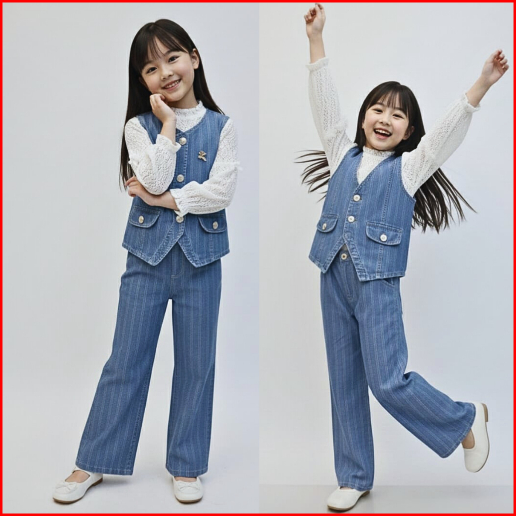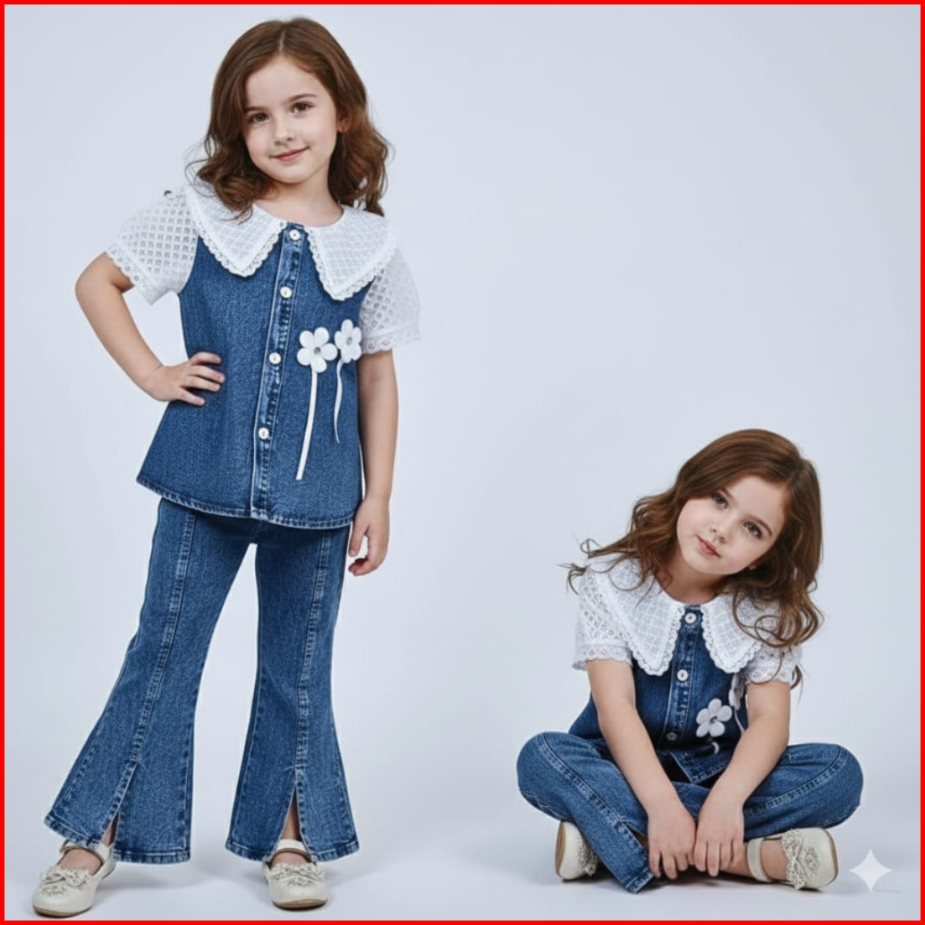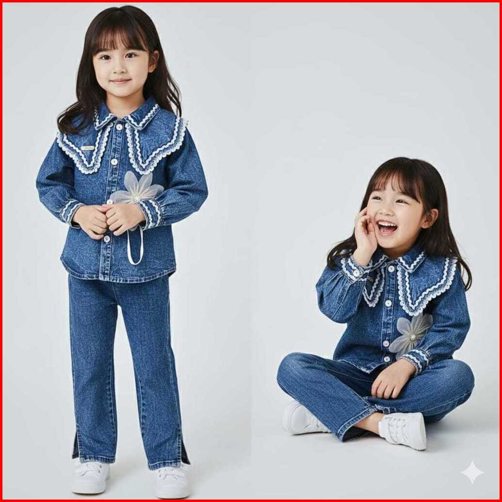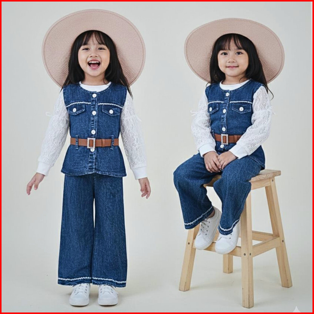 Stelan Jeans Lengan Panjang Anak Perempuan Terbaru 2026 Celana Jeans Cutbray Usia 3 - 12 Tahun 2