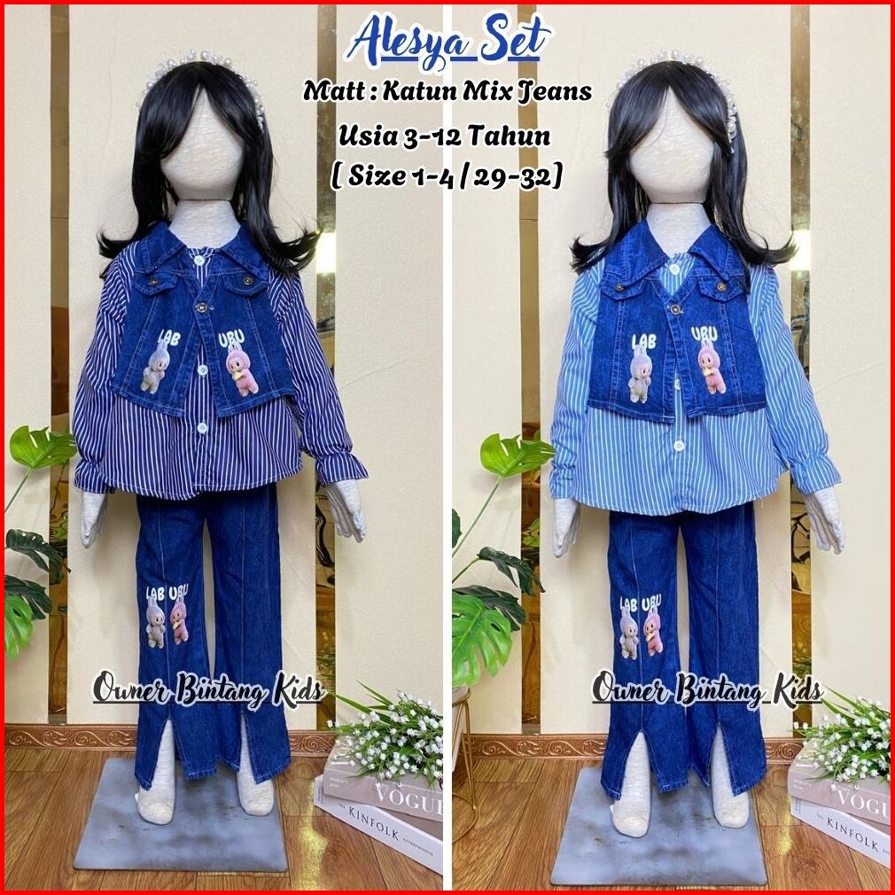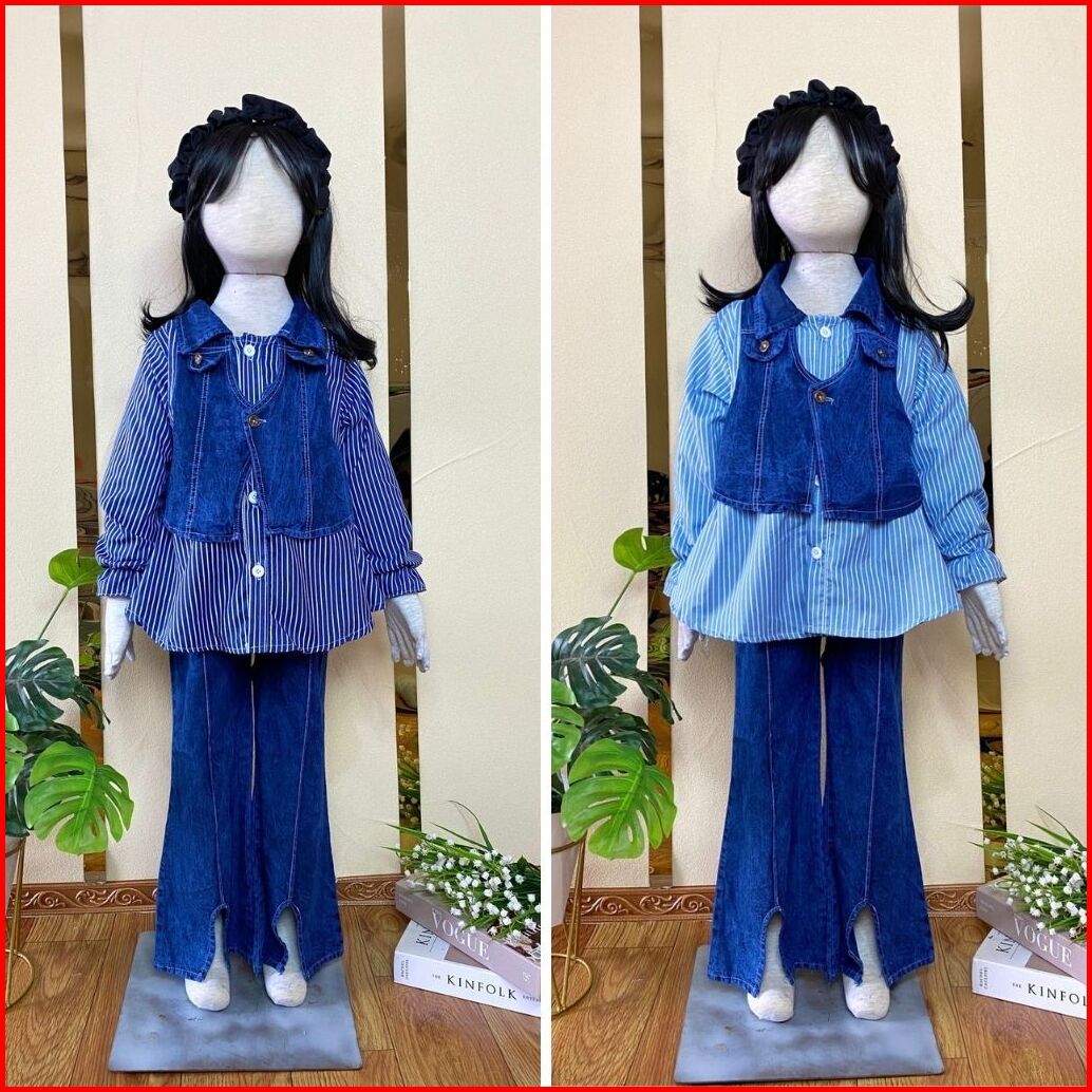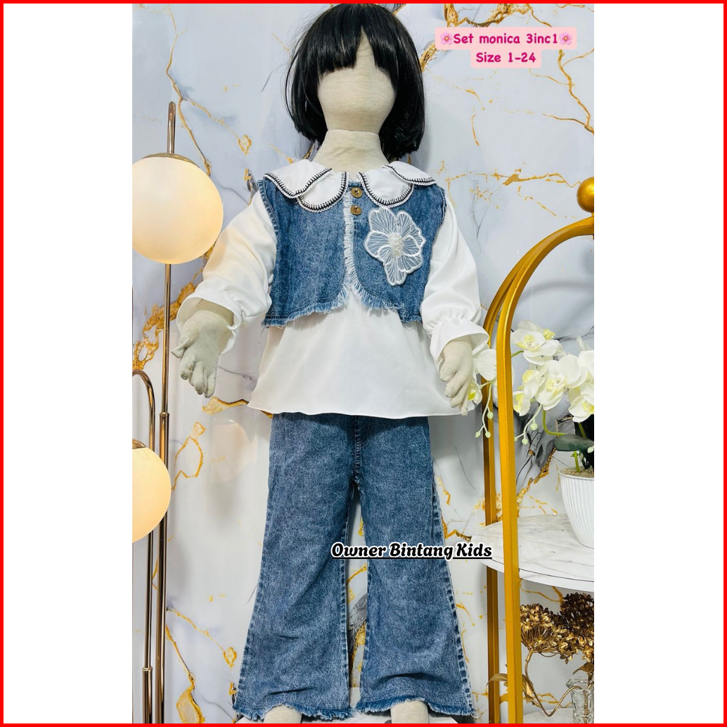 New Setelan Anak Monica Rompi Motif Ballerina Cappucina Virall Korean Style Celana Cutebray Usia 3-10 Tahun Bahan Jeans