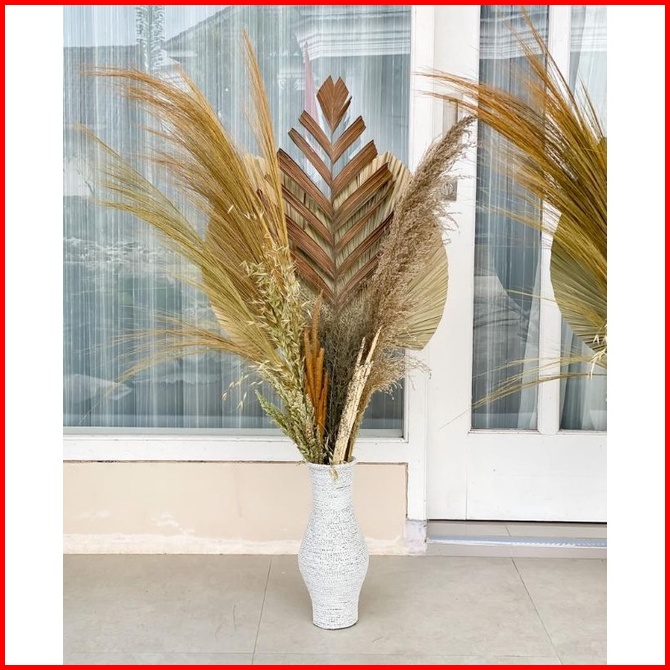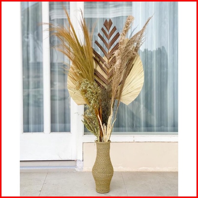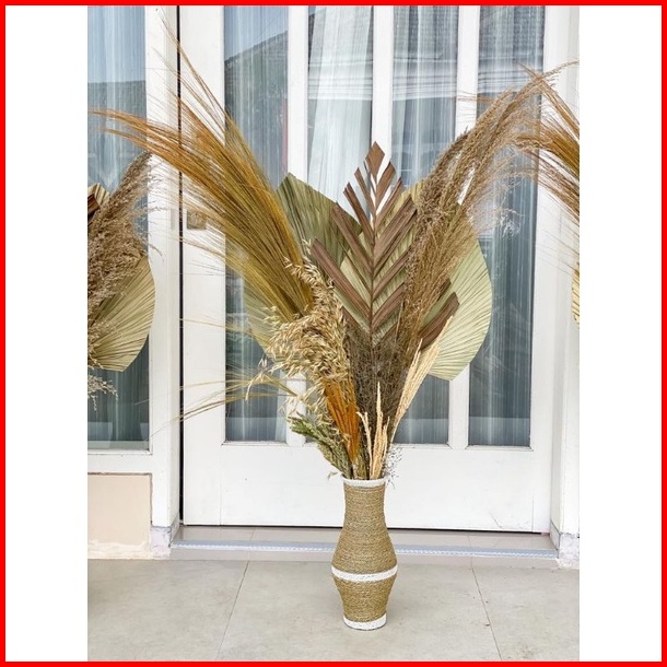 Paket Bunga Kering Termurah Guci Pot Mendong Dekorasi Rustic Aestetic