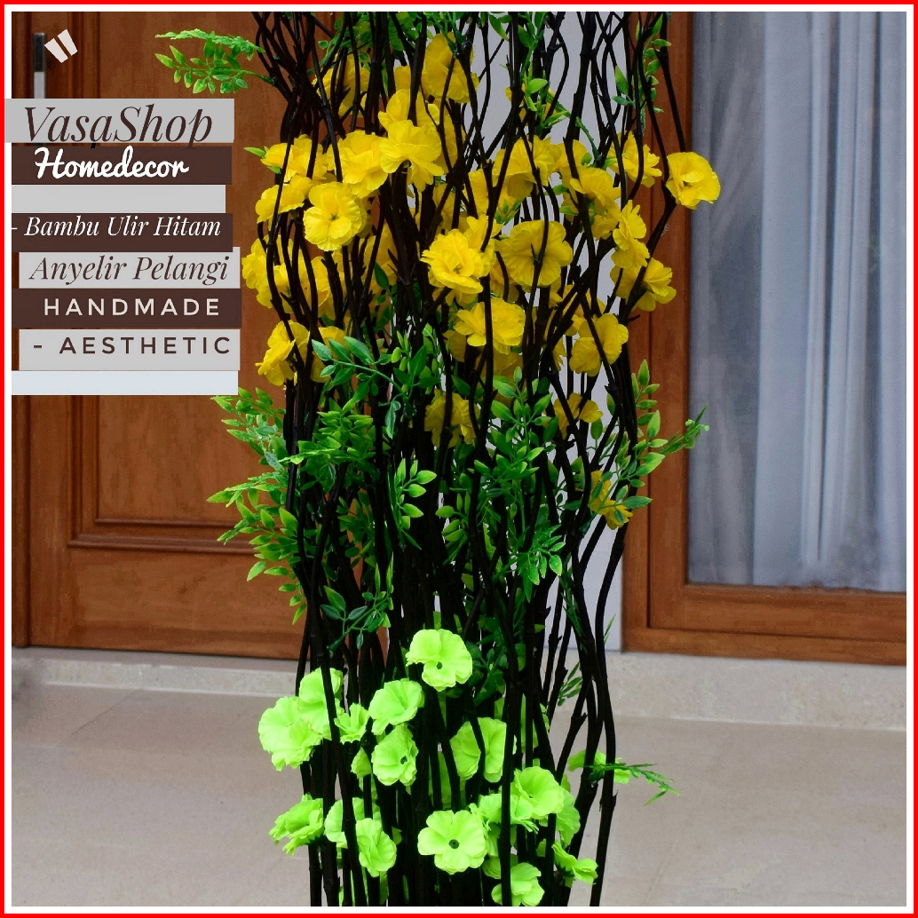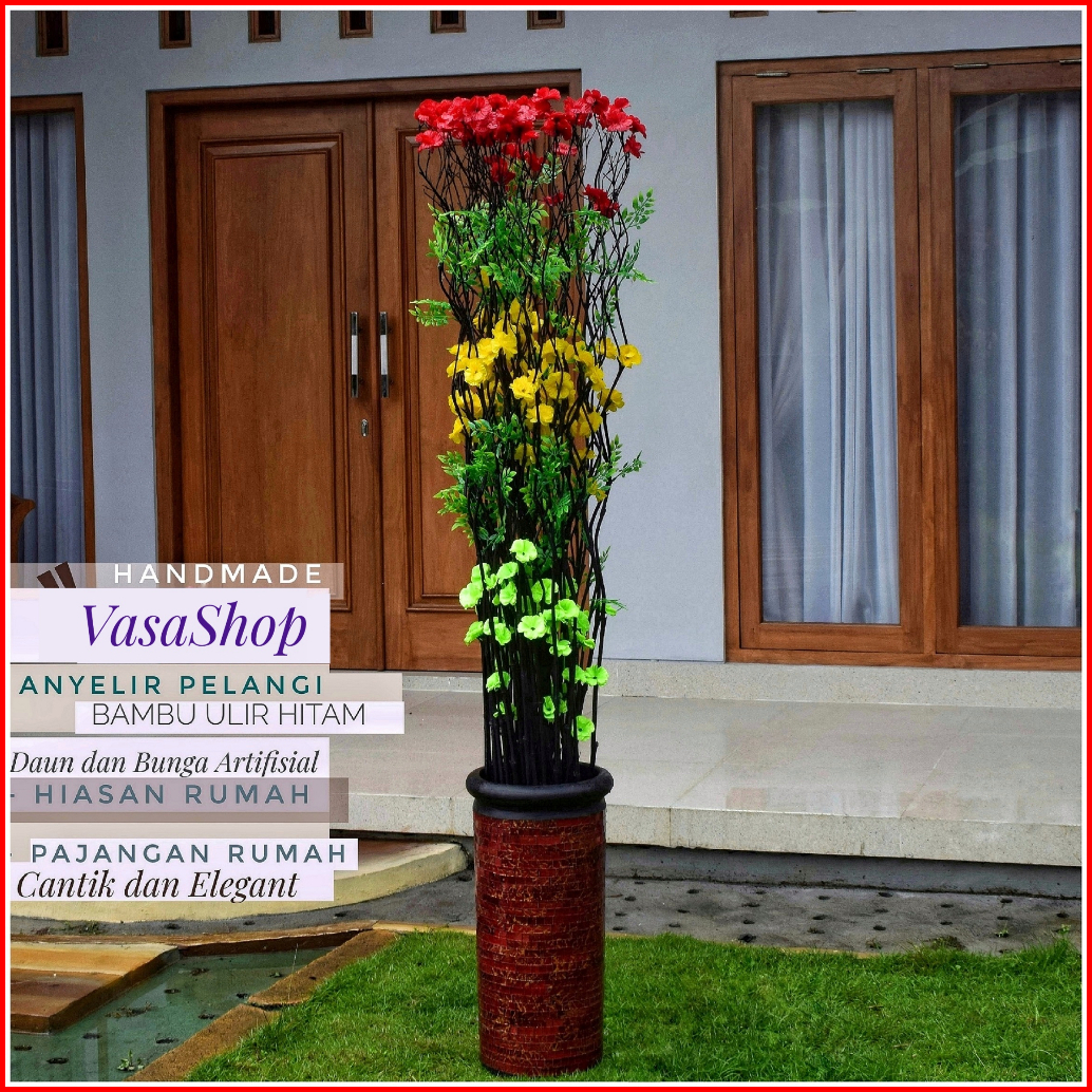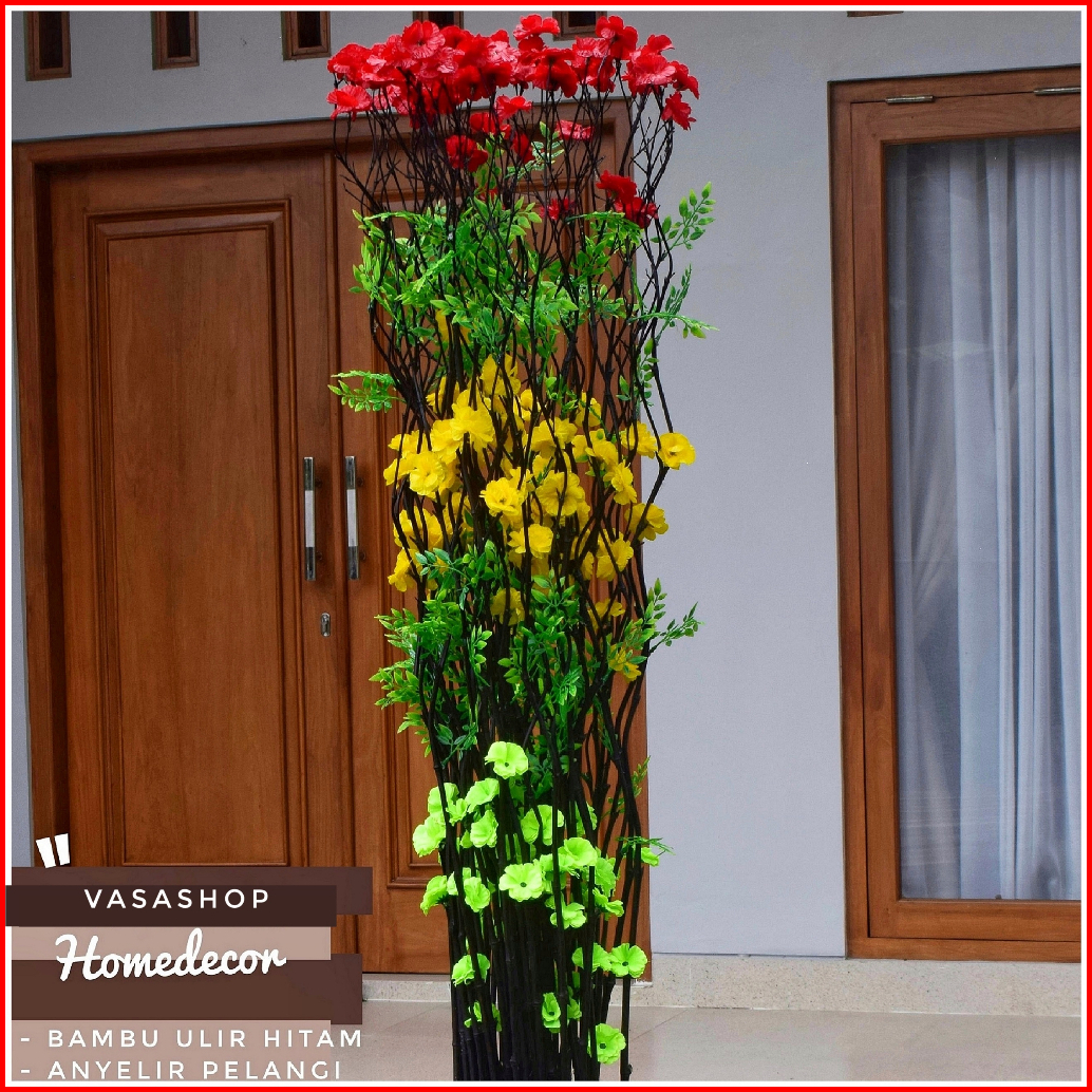 Perlengkapan Rumah Bunga Dekorasi 15 Btg Bambu Ulir Hitam Anyelir Pelangi 170cm Tanpa Pot