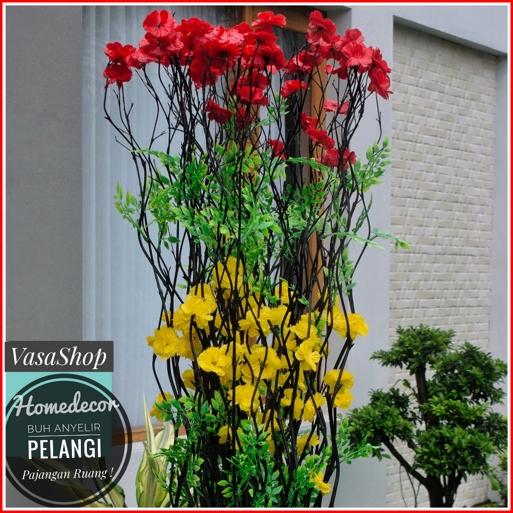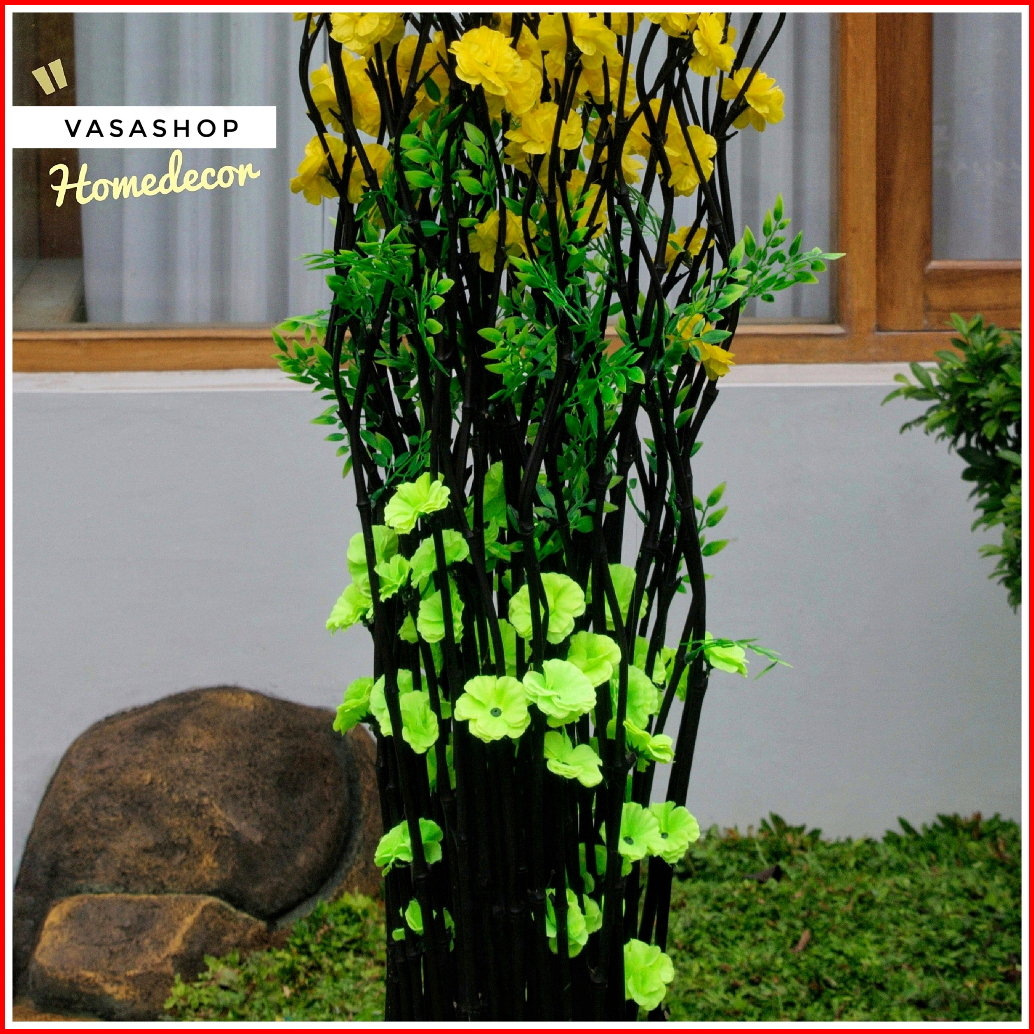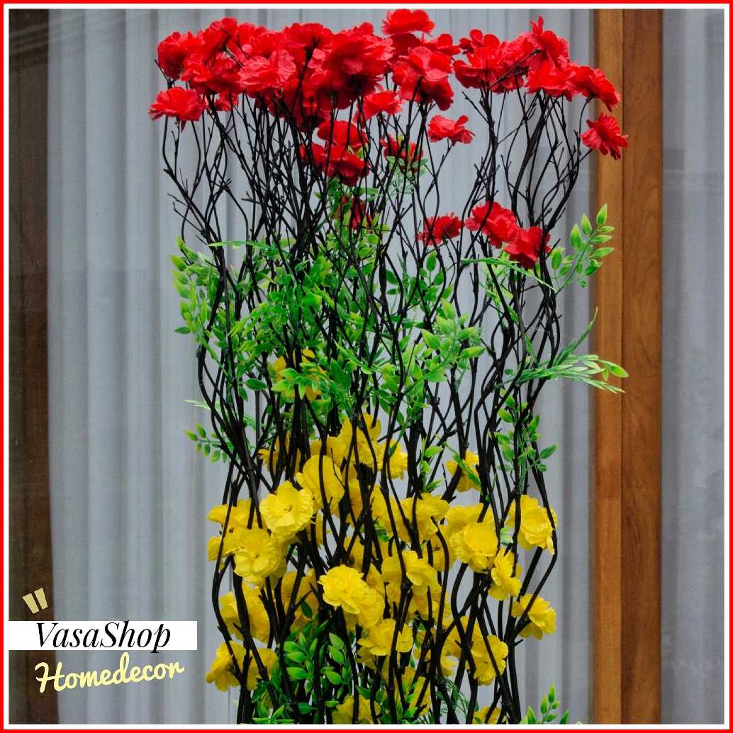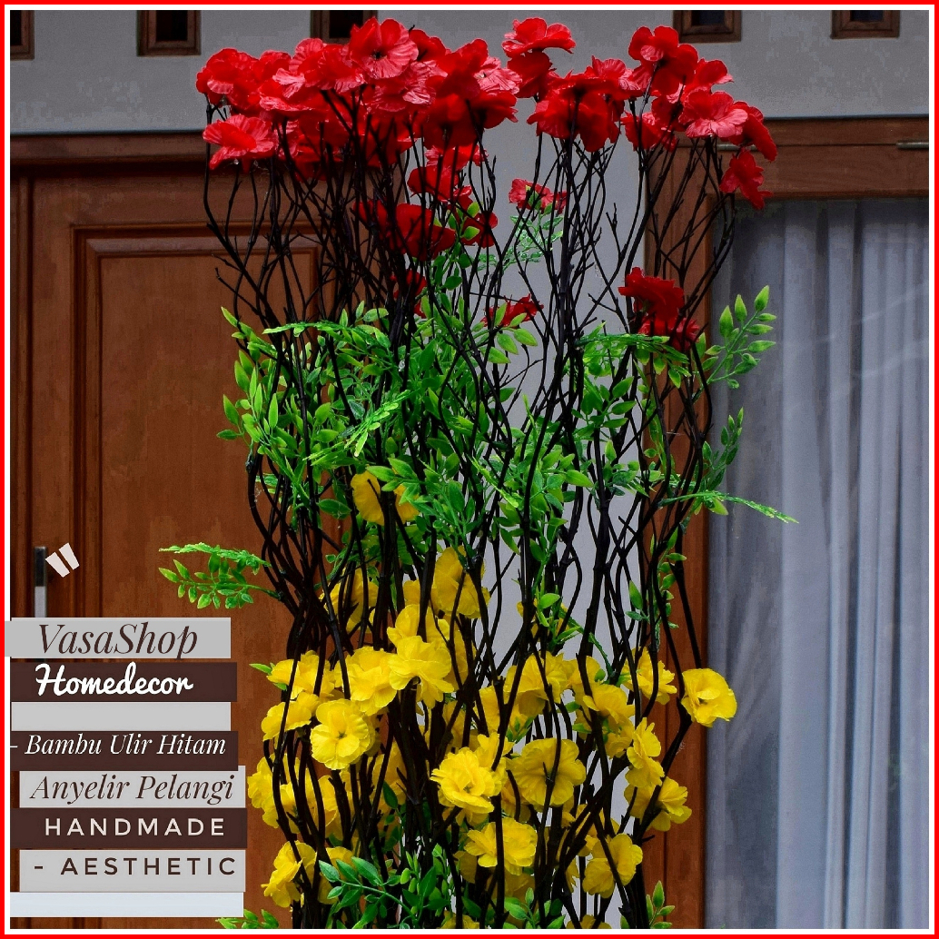 Perlengkapan Rumah Bunga Dekorasi 15 Btg Bambu Ulir Hitam Anyelir Pelangi 170cm Tanpa Pot