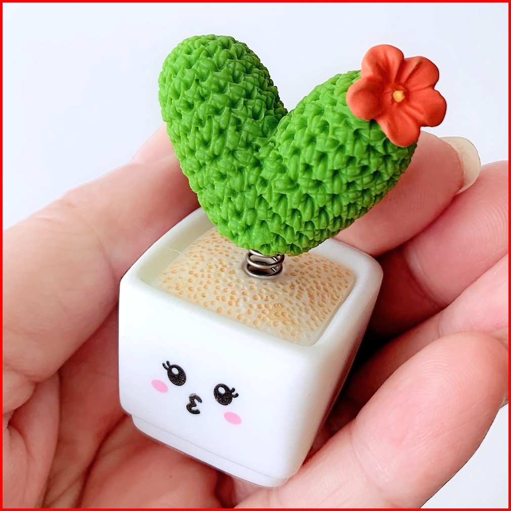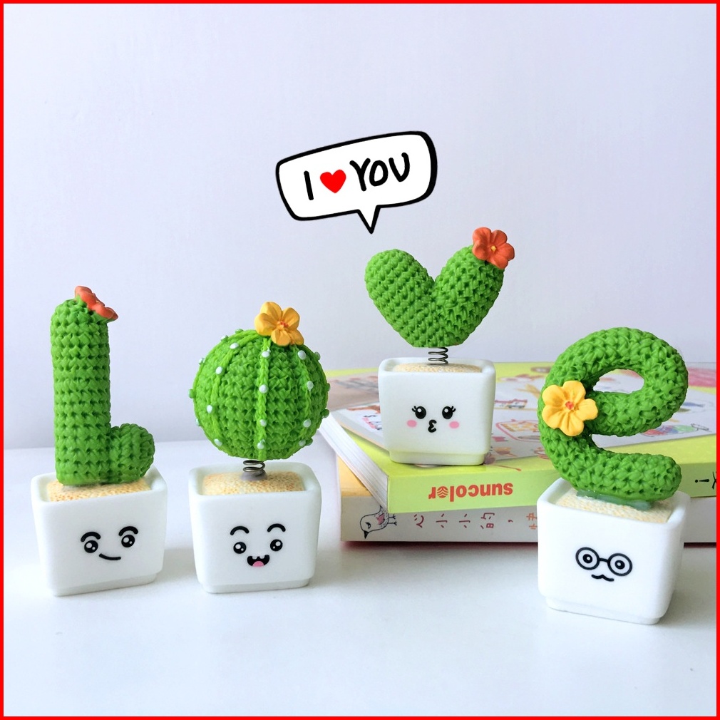 Set 4pcs - Dekorasi Pajangan Dashboard Mobil Tanaman Kaktus Smiley Love Gift Hadiah Bobble Head