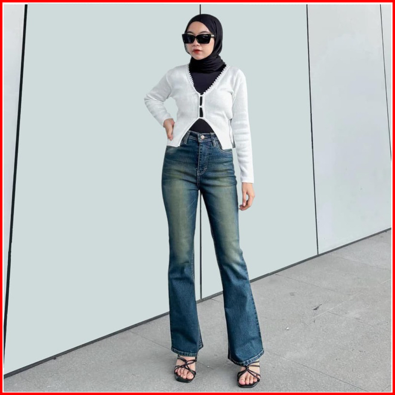 Highwaist Cutbray Jeans Retro 114 - Celana Jeans Cutbray Premium