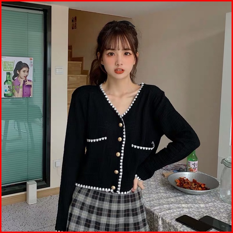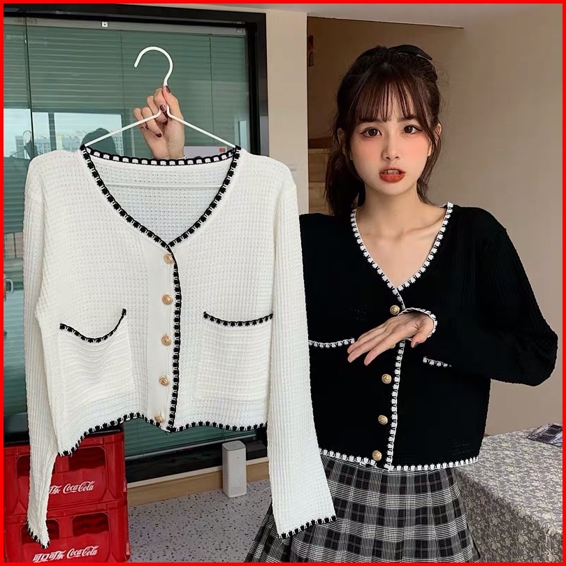Cardigan Rajutan Korea Atasan V-neck Wanita Kardigan Wanita