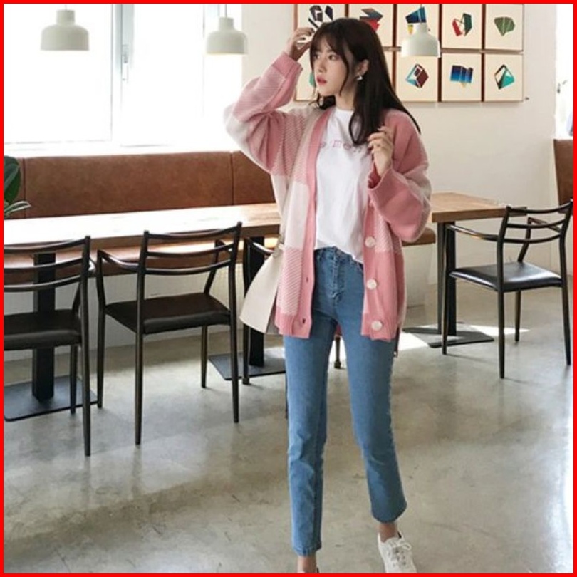 Irene Knit Cardy Kardigan Rajut Korea Pink Kotak