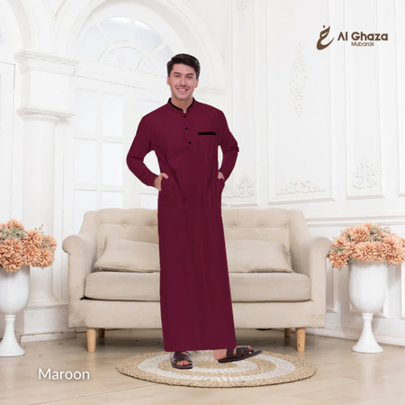 Alghaza Mubarak | Jubah Slim Fit Dewasa Cowok Lengan Panjang | Gamis Arofah Lengan Kemeja | Reguler Fit