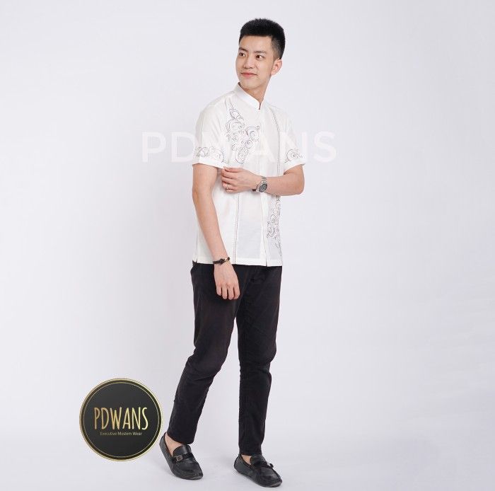 BAJU KOKO Muslim Lengan Pendek Putih Motif Bordir PDWANS - ALS05