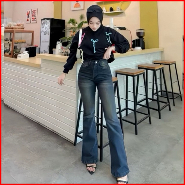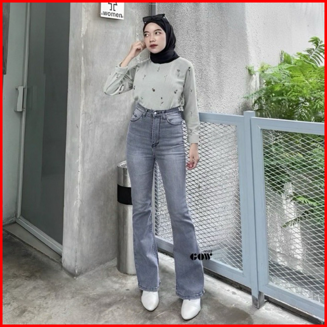 Highwaist Cutbray Jeans Retro 114 - Celana Jeans Cutbray Premium