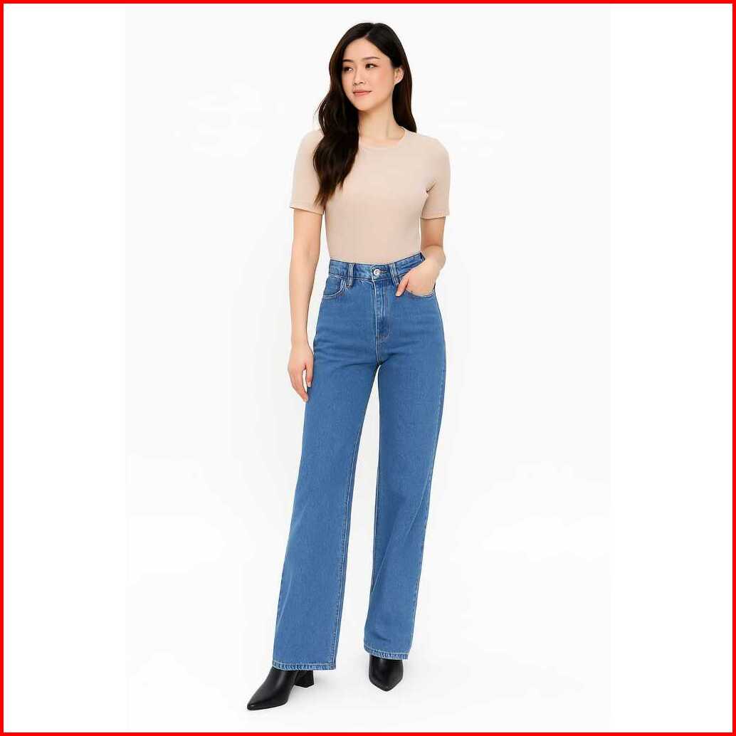 Celana Jeans Wanita Loose Highwaist Non Stretch Kulot Gombrong Skena Premium Kekinian Cutbray Stretch