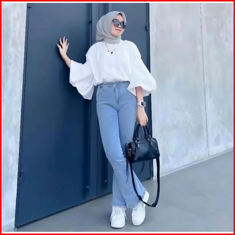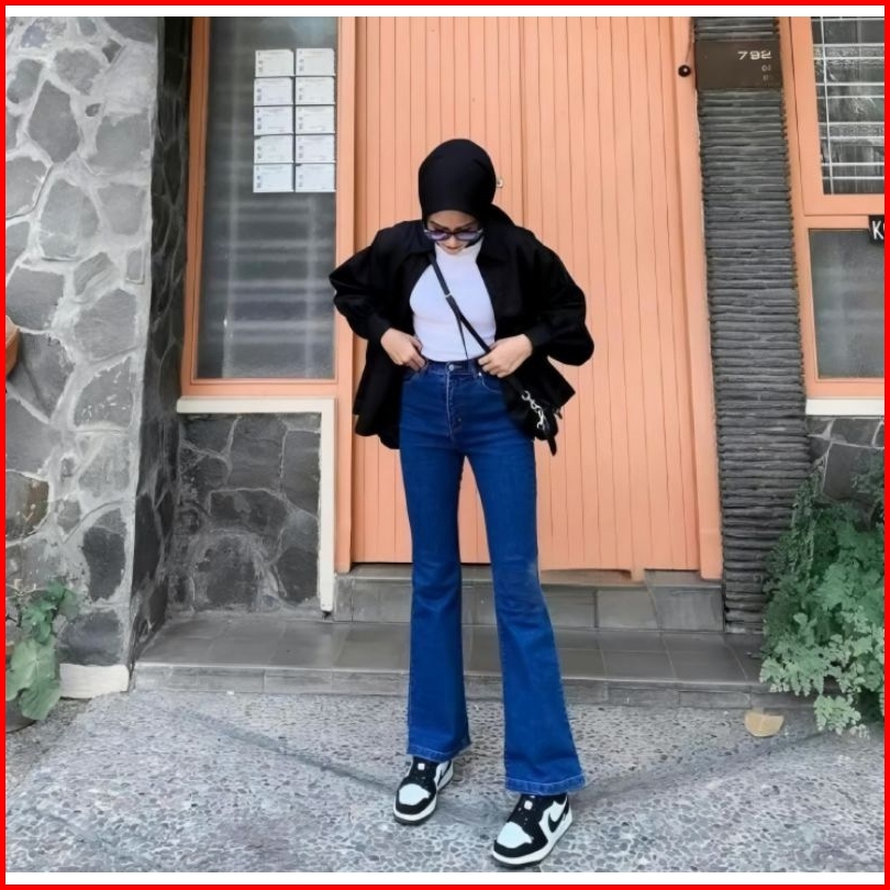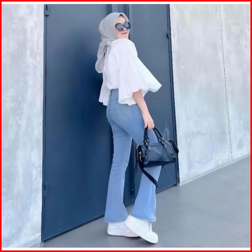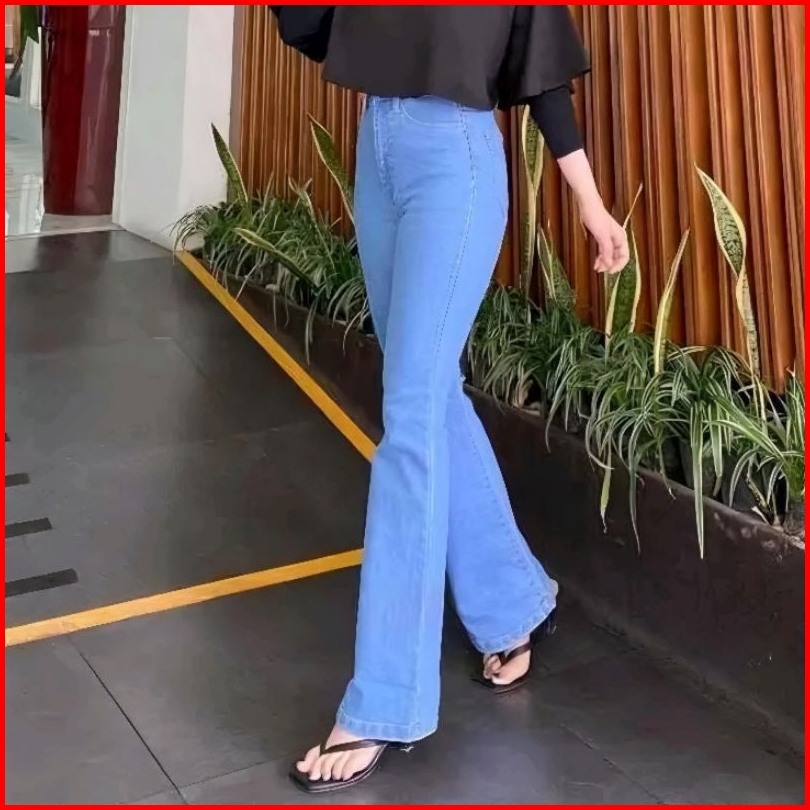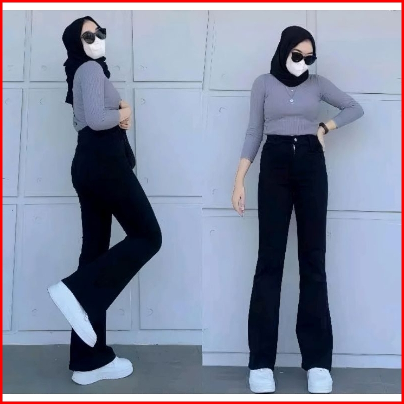 Inaya - Hw Cutbray Jeans Wanita Streetch Premium Quality - Highwaist Cutbray Jeans Wanita Melar