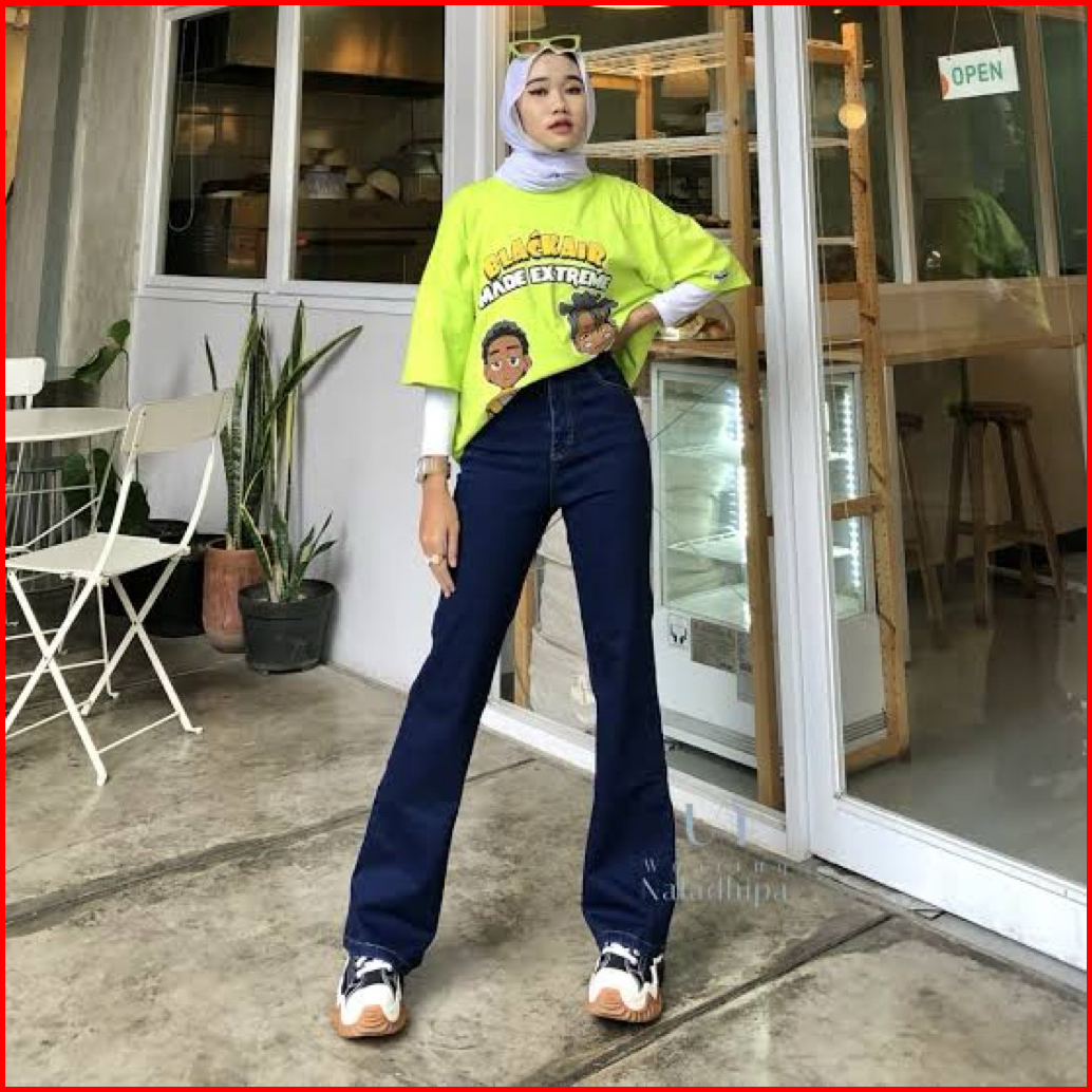 Highwaist Celana Cutbray Jeans Wanita Stretch Premium Cutbray Jeans Wanita Panjang