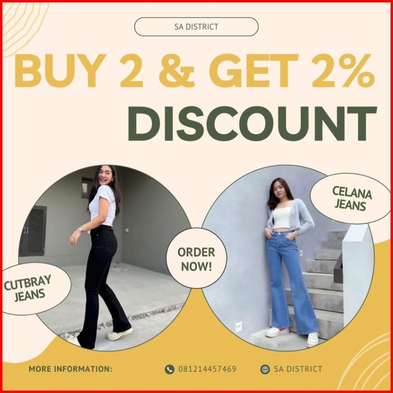 Celana Jeans Cutbray Wanita Highwaist Premium Denim Stretch Kekinian