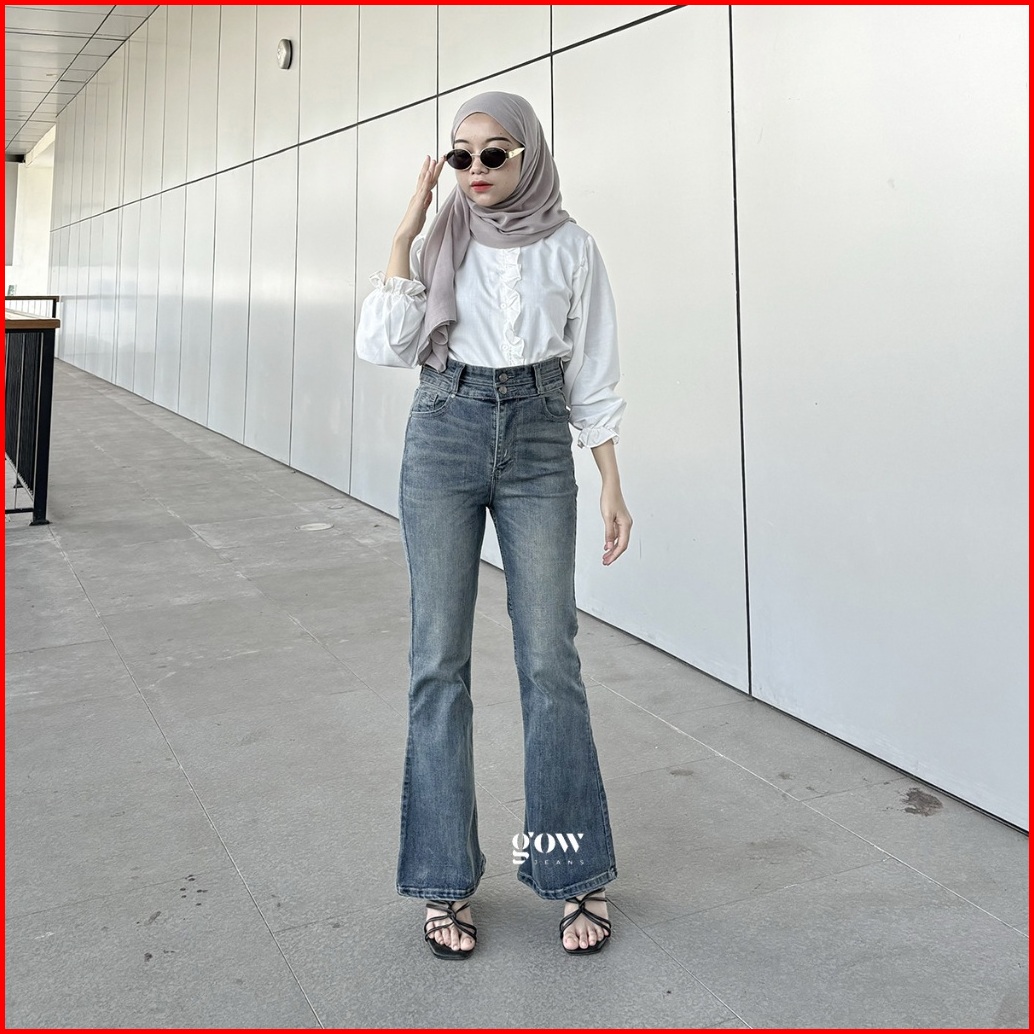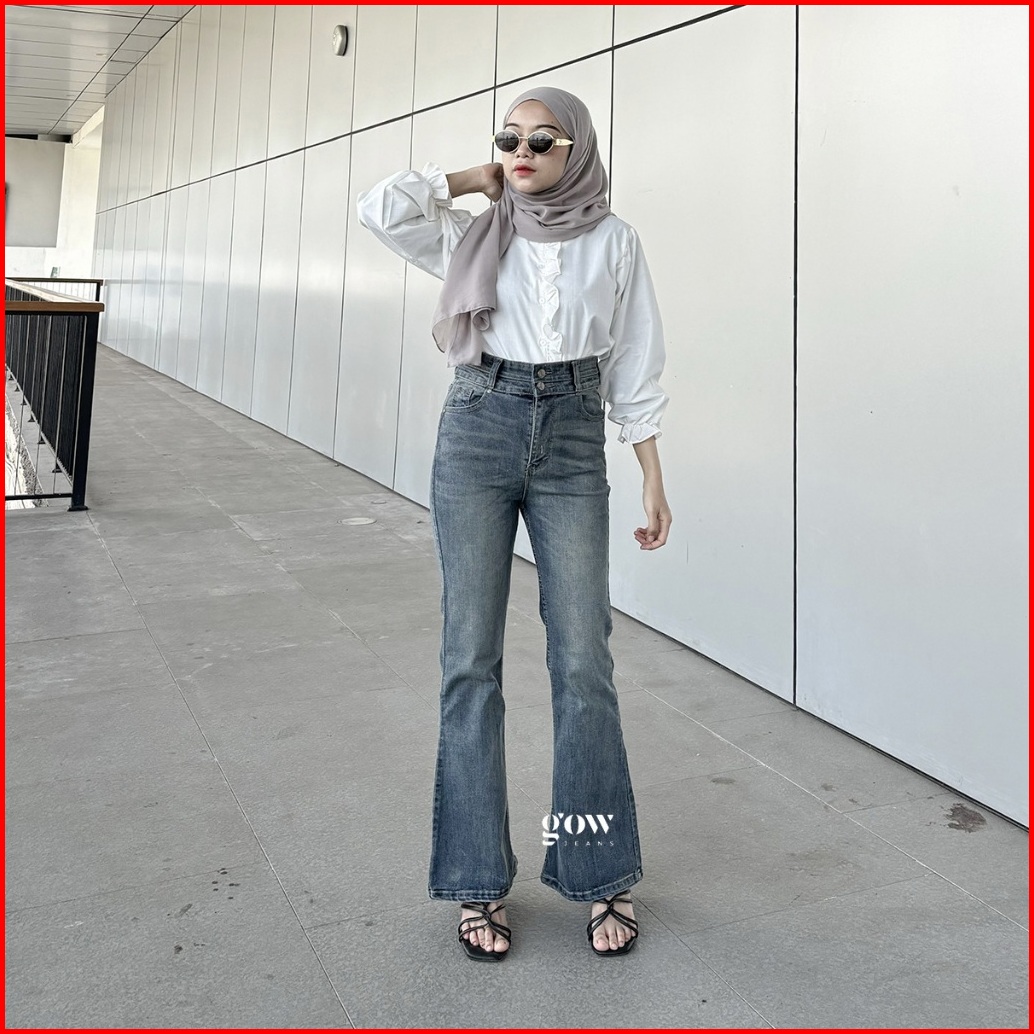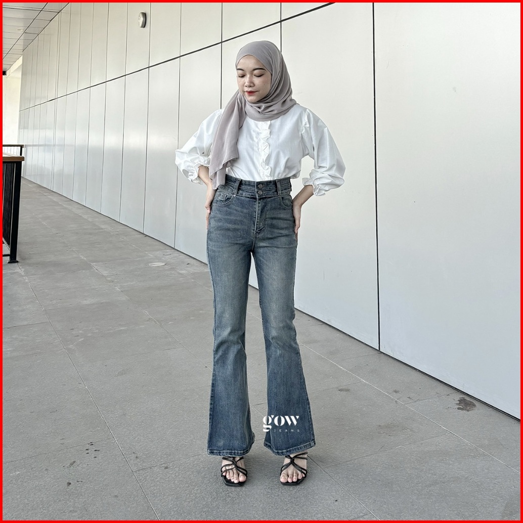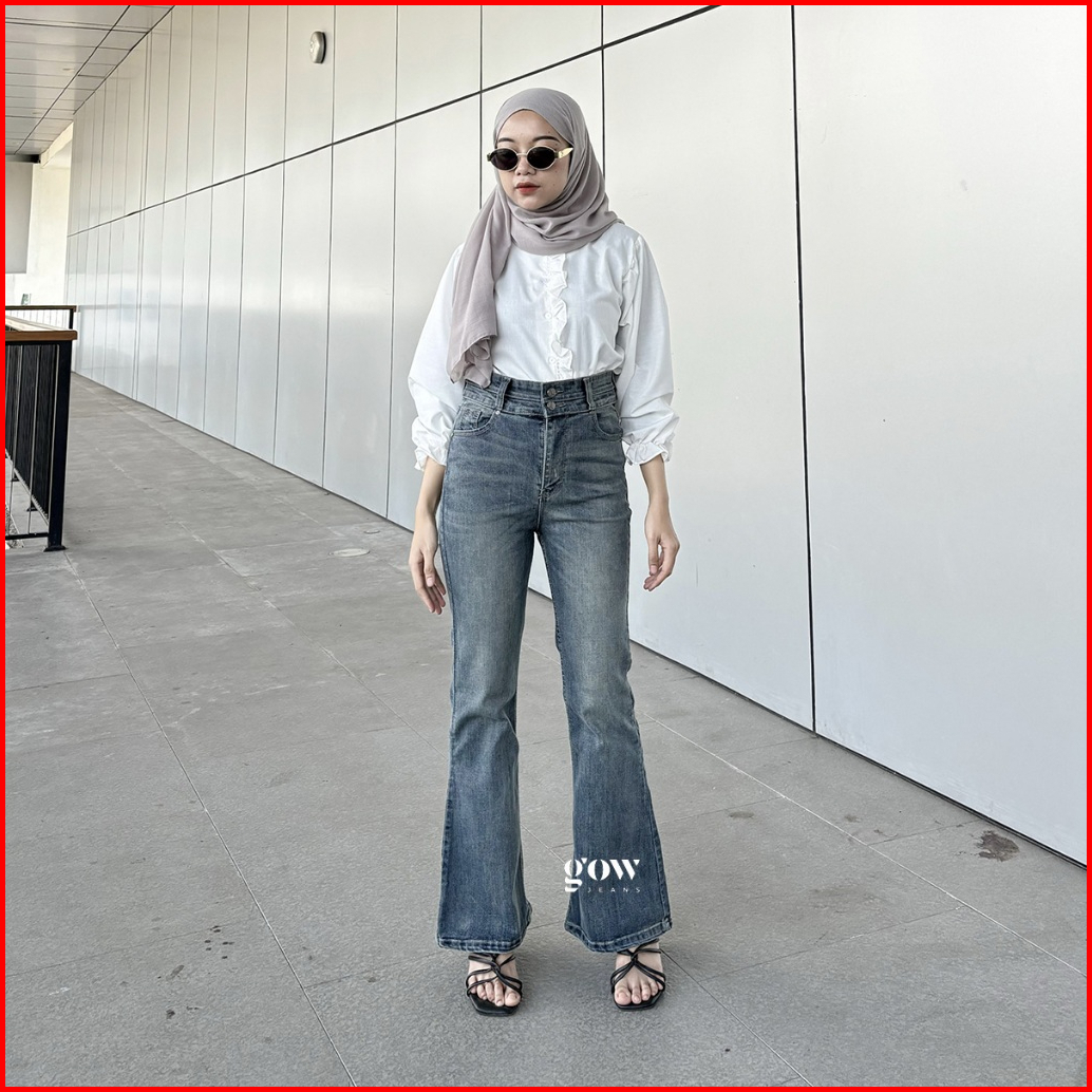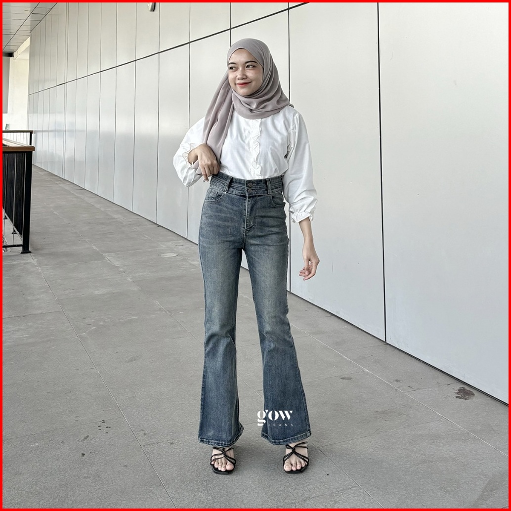 Gowjeans - Valora Highwaist Cutbray Jeans Stretch Wisker Slim-fitting Double Buttons 27 - 34