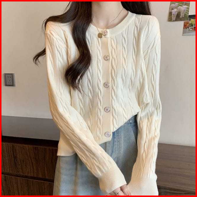 Lady Collection - Cardigan Rajut Wanita Polos Lengan Panjang-kardigan-rajut Korean Style 020-a