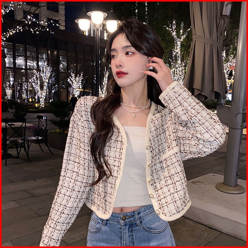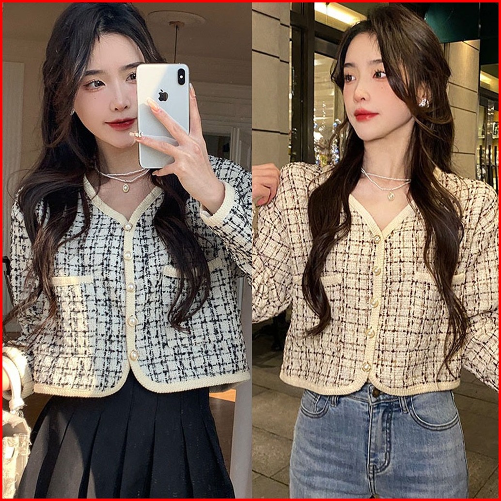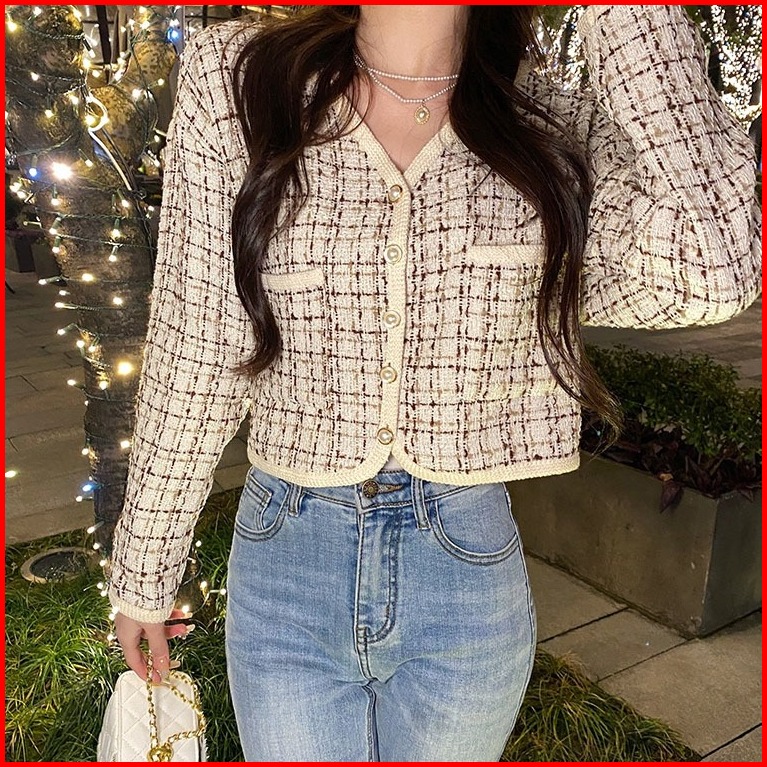 Jaket Pendek V-neck Korea Style Loose Crop Import Top Lengan Panjang Cardigan