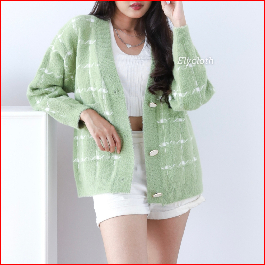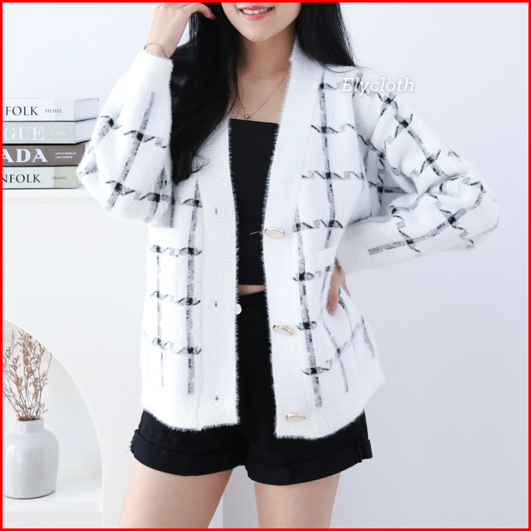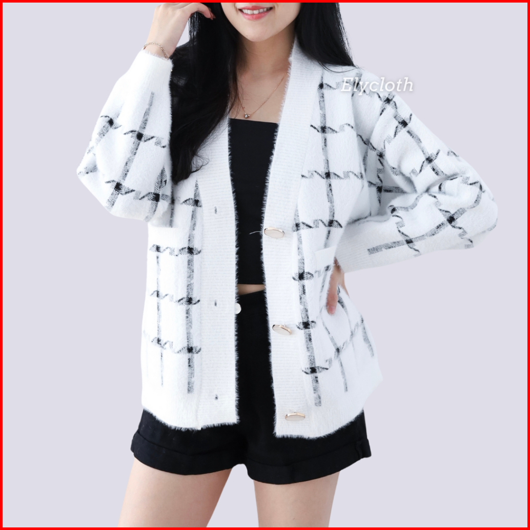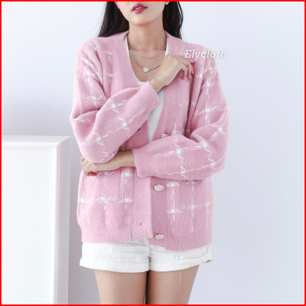 Elycloth Ellie Cardigan Cardigan Rajut Wanita Premium Fury Knit