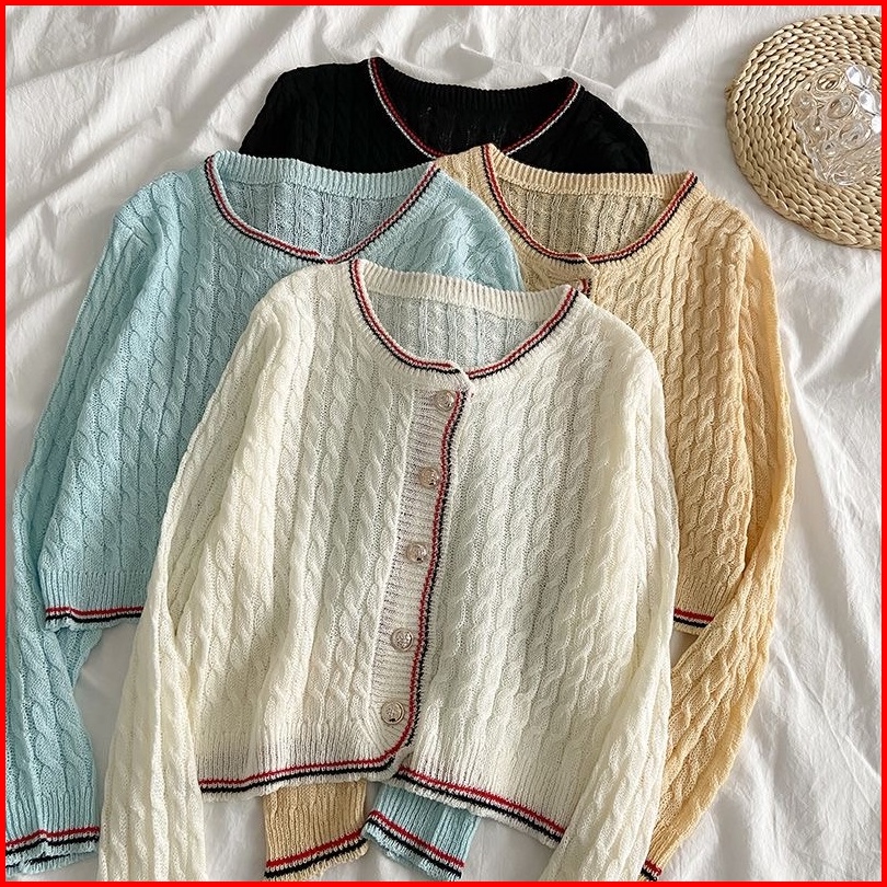 Dewi Rajut Atasan Pendek Lembut Jepang Gaya Baru Kardigan Angin Harum Kecil Mantel Wanita