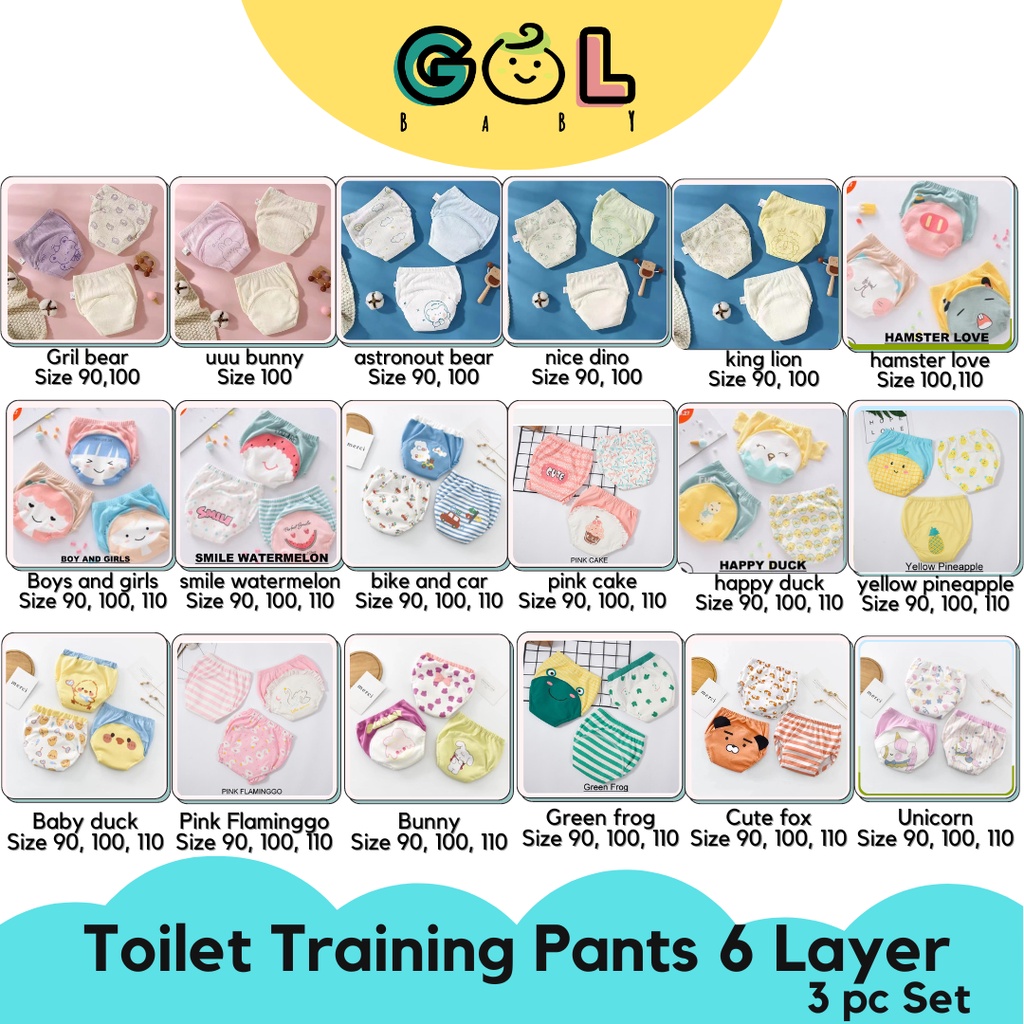 GOL Baby 6 layer Popok Celana Dalam Kain Cloth Diaper Clodi Toilet Training Pant Latihan Pipis Bayi Anak