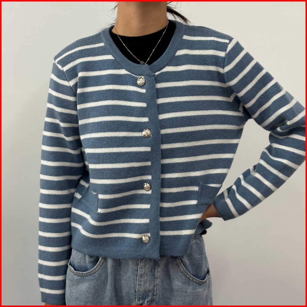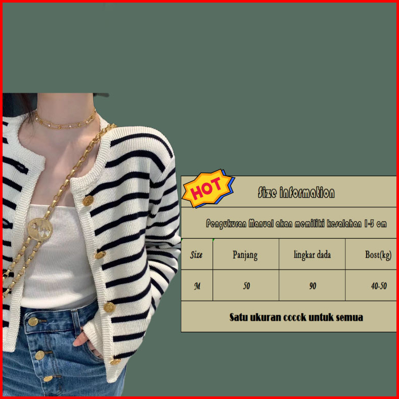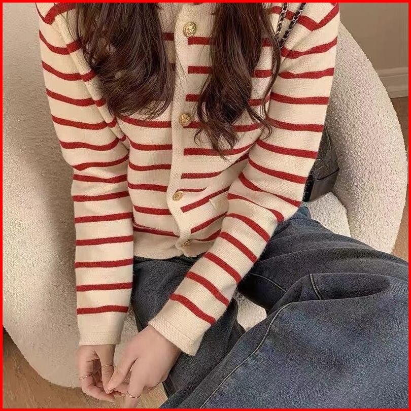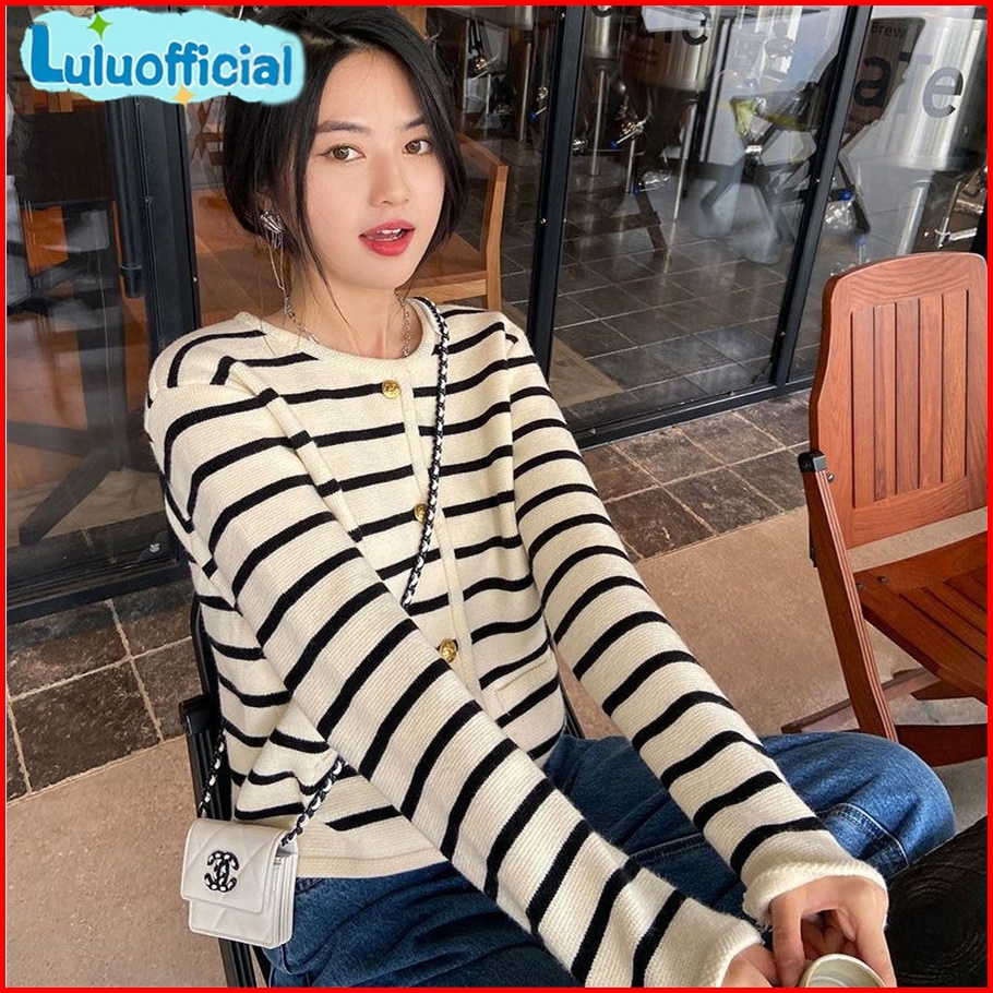 Luluoffcial Stripes Knit Cardigan Korean Vintage Flower Cardigan Cardigan Wanita