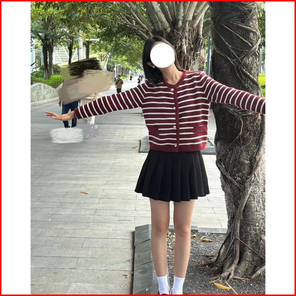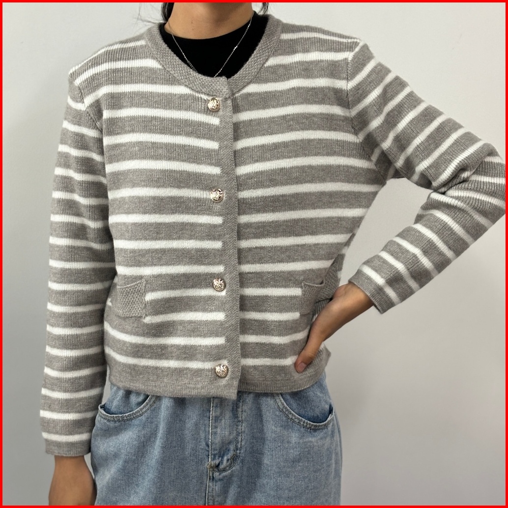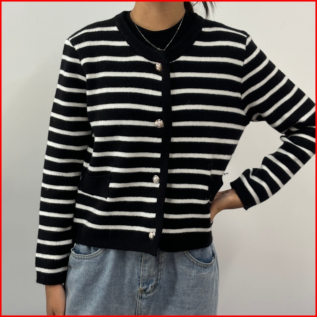 Luluoffcial Stripes Knit Cardigan Korean Vintage Flower Cardigan Cardigan Wanita