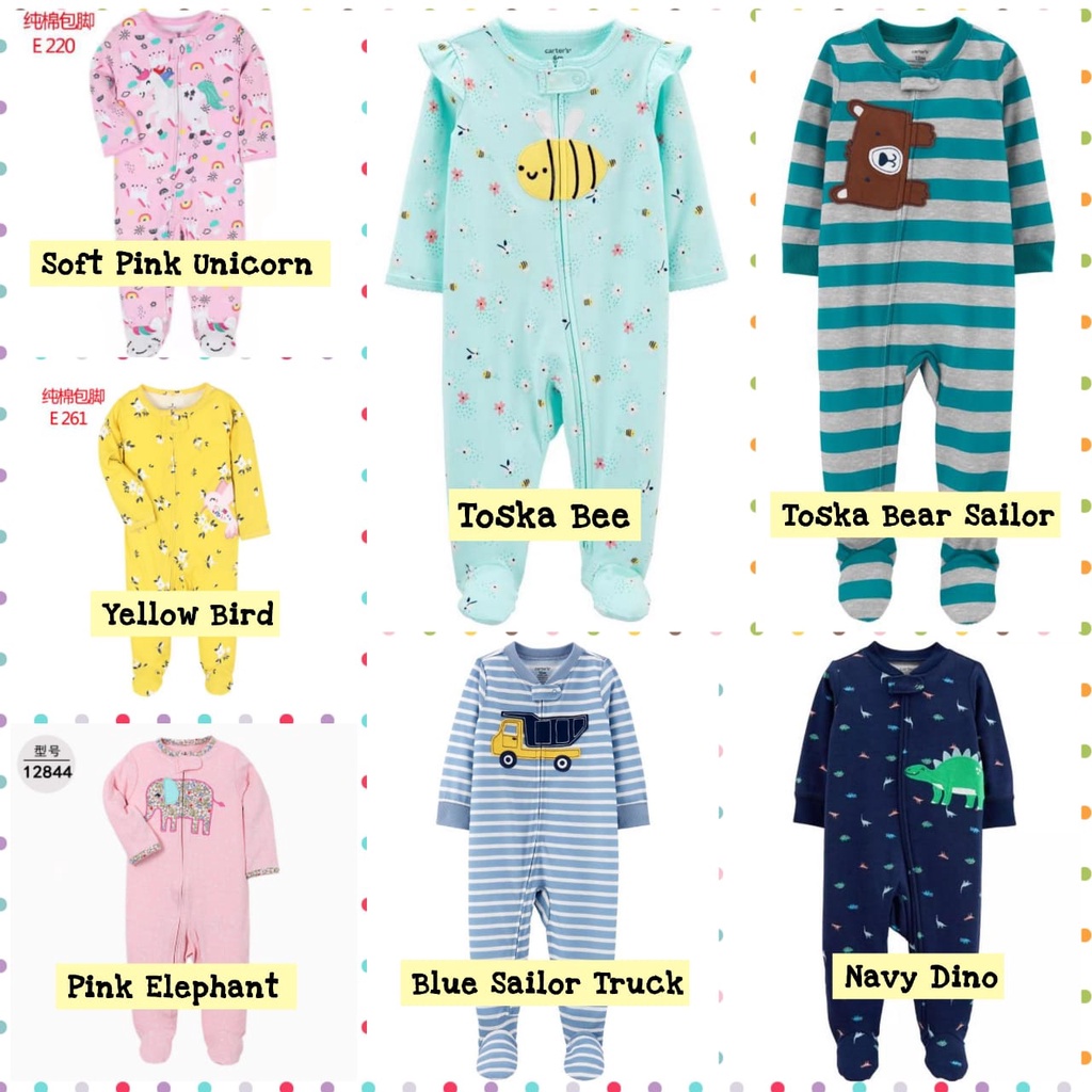 Jumpsuit Tutup Kaki Bayi Laki Laki Perempuan /Sleepsuit Baju Tidur Bayi Kancing/Jumper Newborn Impor
