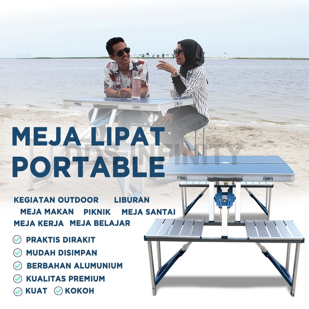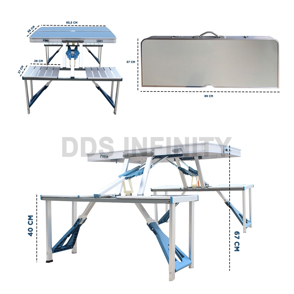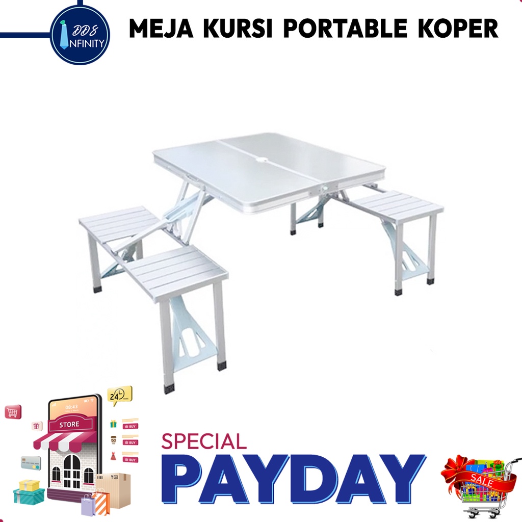[DDS Infinity] Folding Table with 4 chair/ Meja Lipat + Kursi Portable Koper Serbaguna