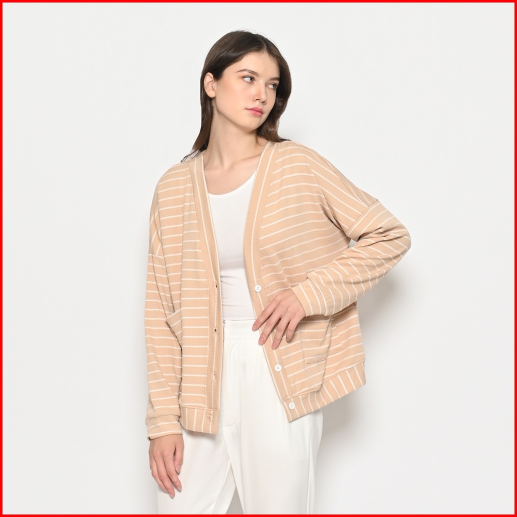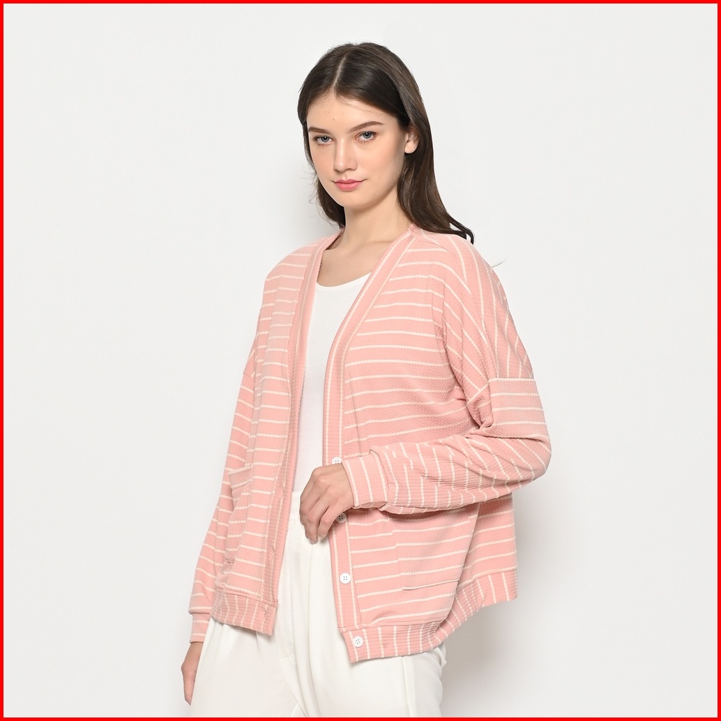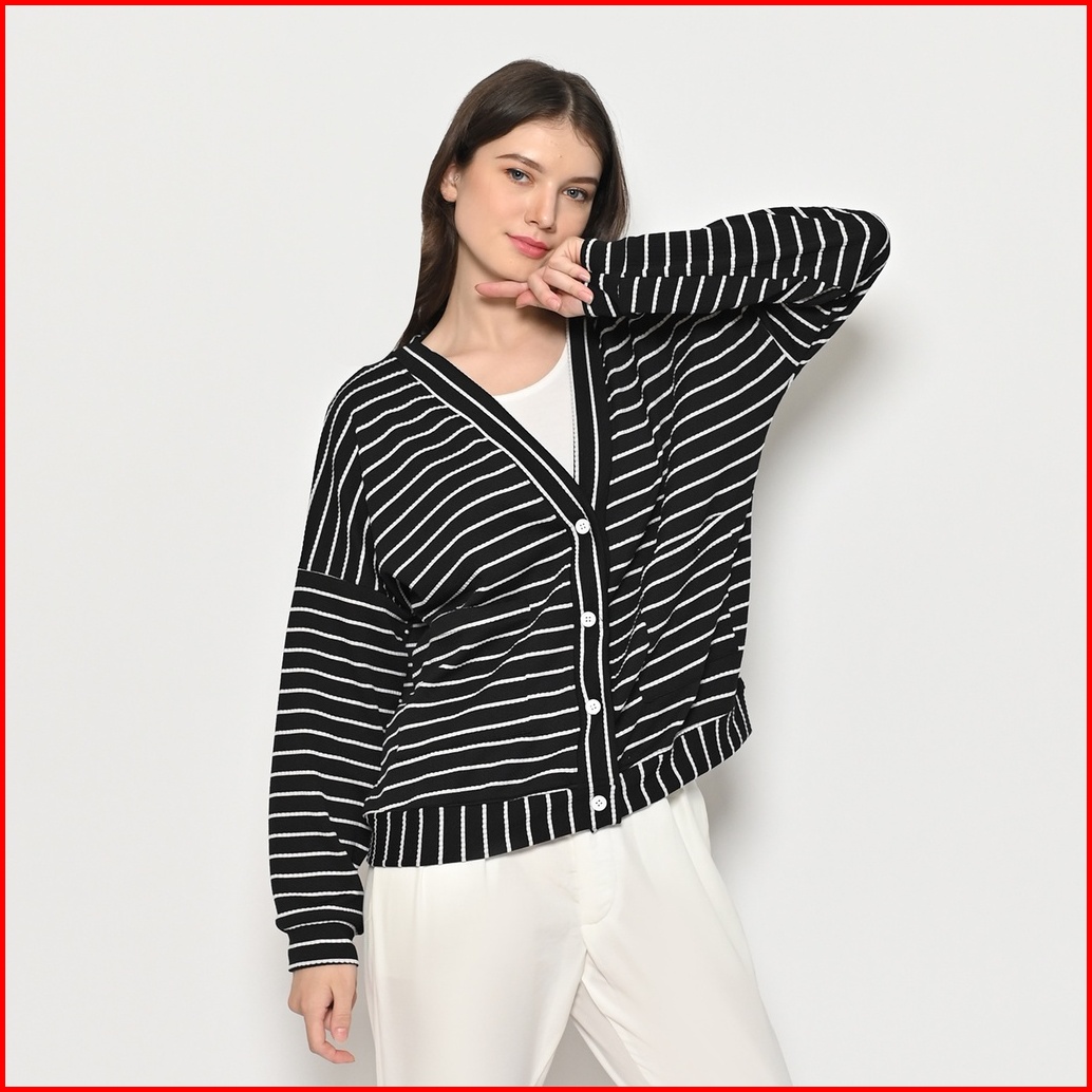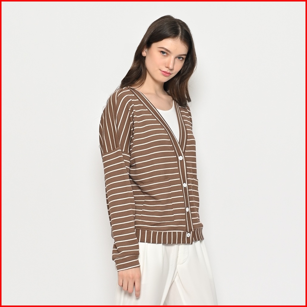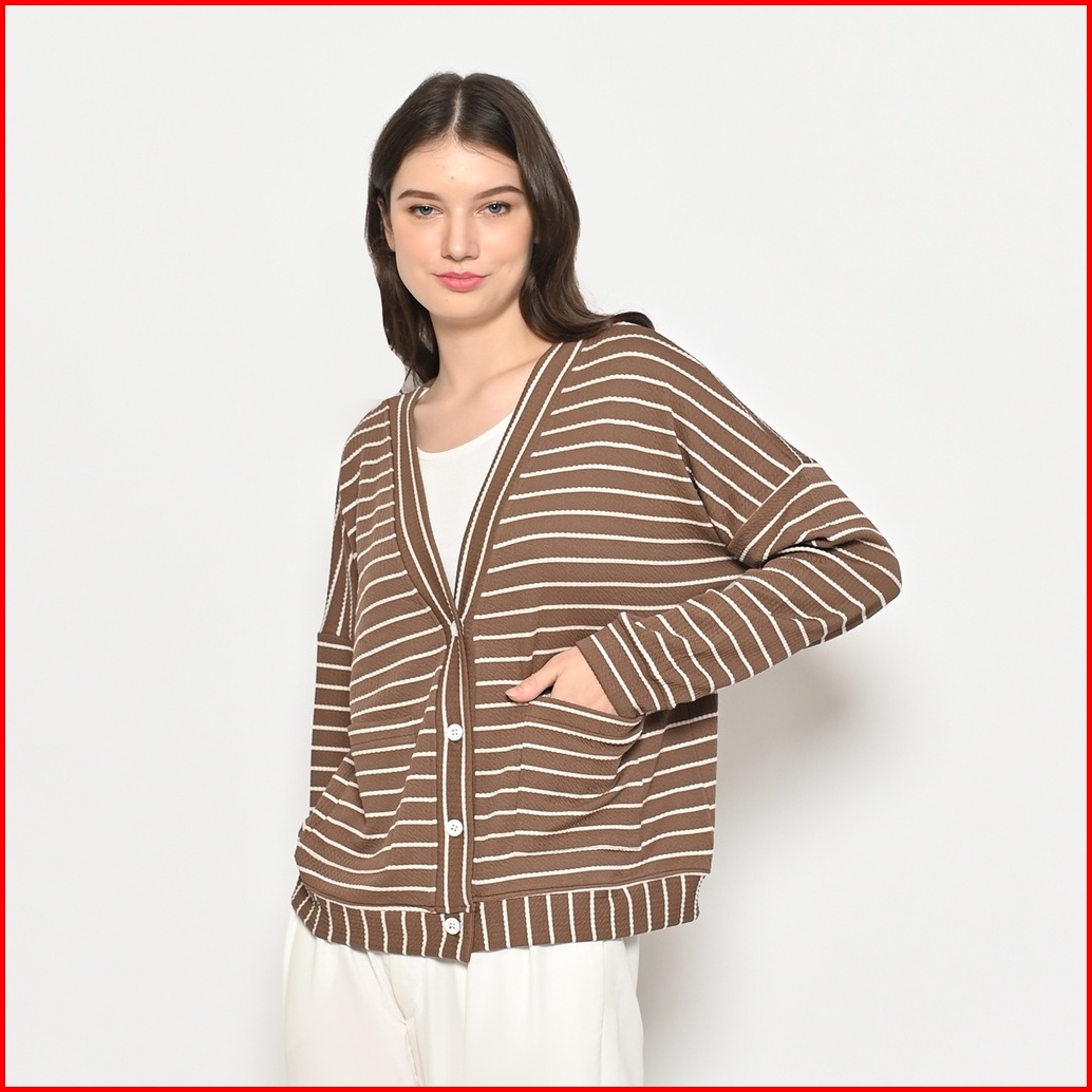Queentin Cardigan Casual Wanita 0360 Knit Aiko Stretch Mini Salur Lengan Panjang