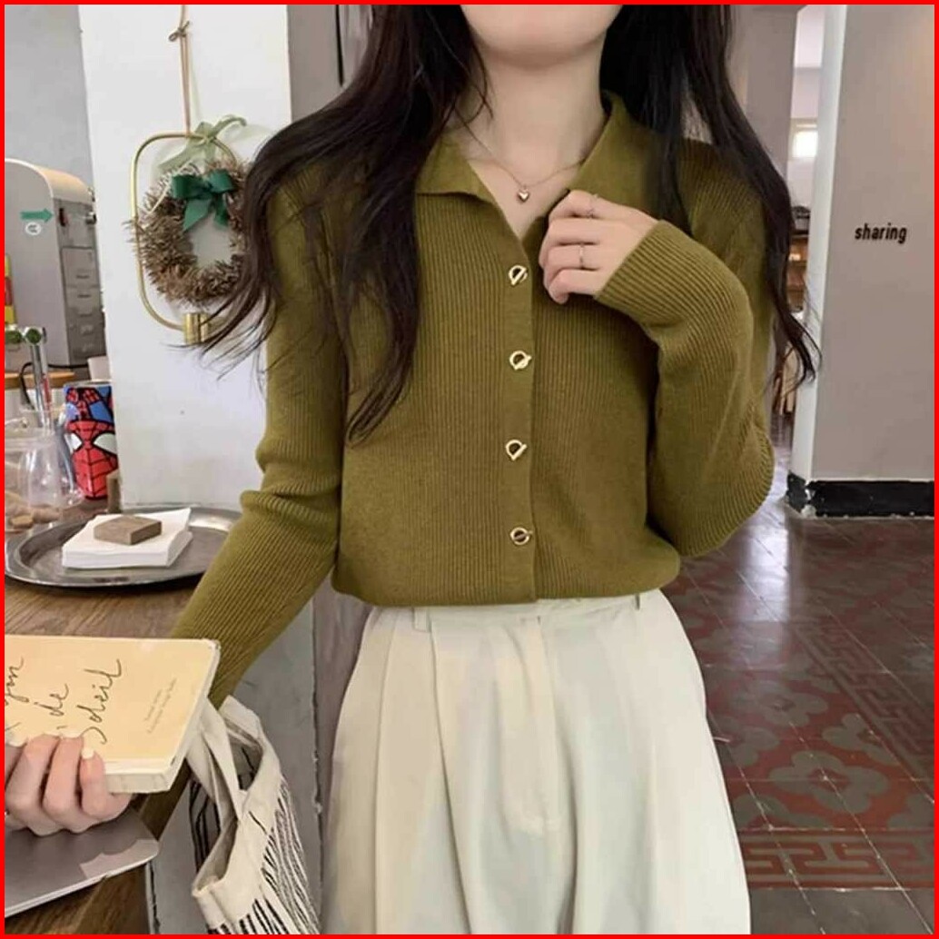 Avanue.outlet D13 Cardigan Rajut Wanita Berkancing Polos Hidup Lengan Panjang Bahan Premium