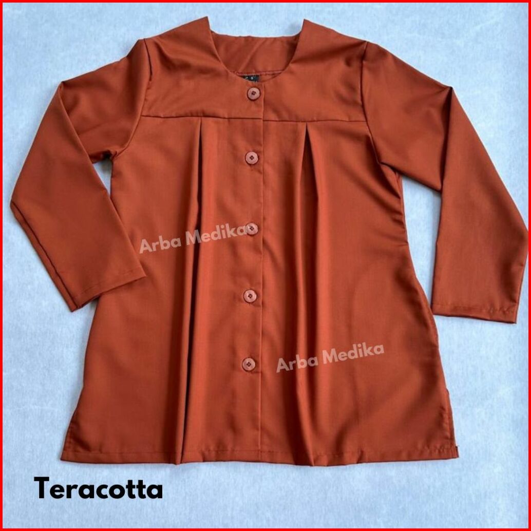 Baju Ok Bumil Maternity Scrub Ibu Hamil Perawat Nakes Full Kancing Lengan Panjang Polos One Set