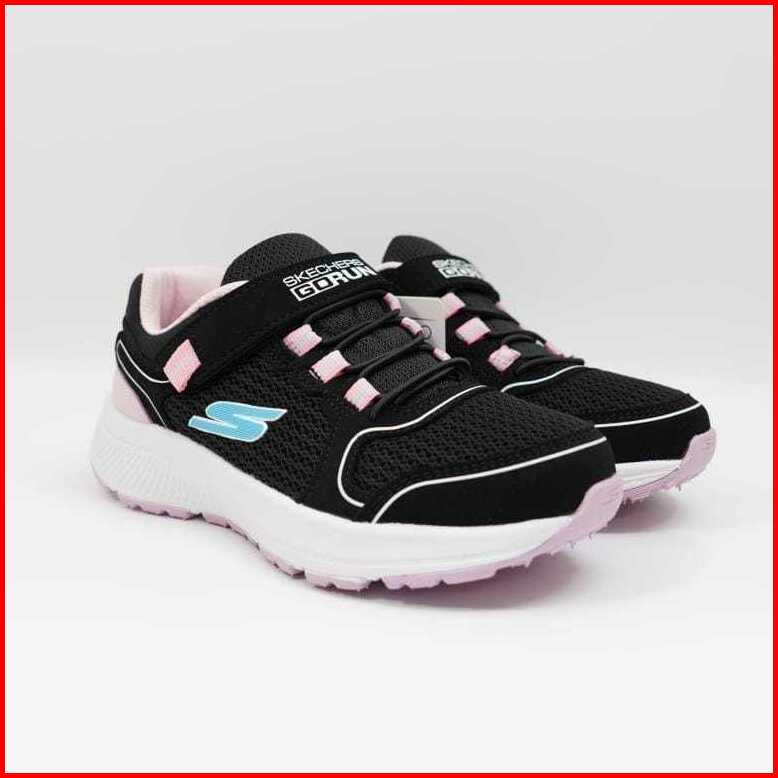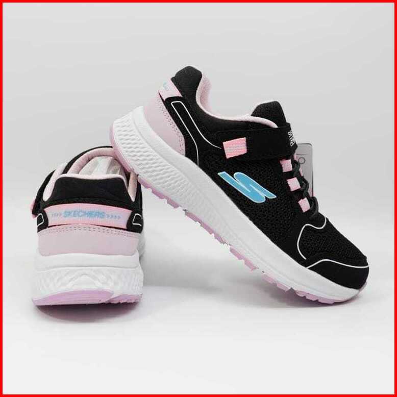Sepatu Anak Perempuan Sekolah Skechers Hitam Pink Model Perekat Black Pink