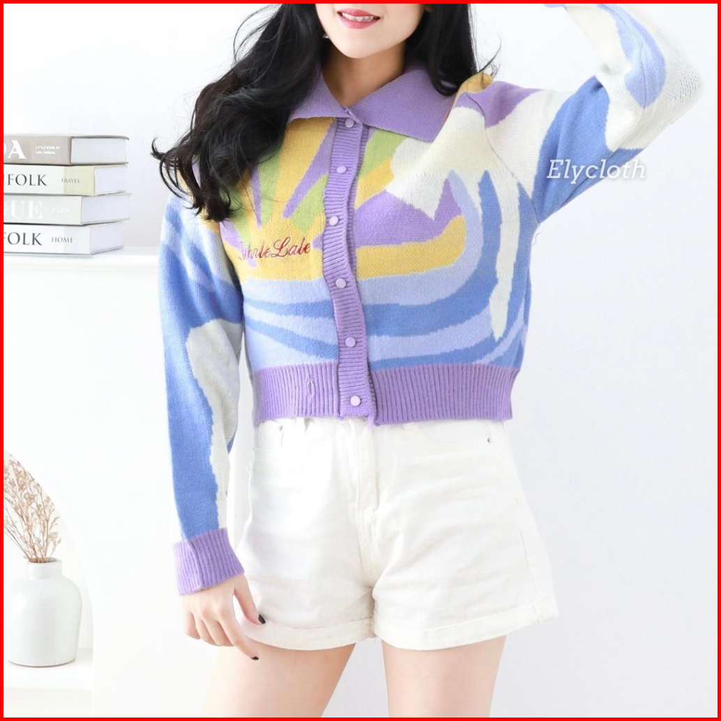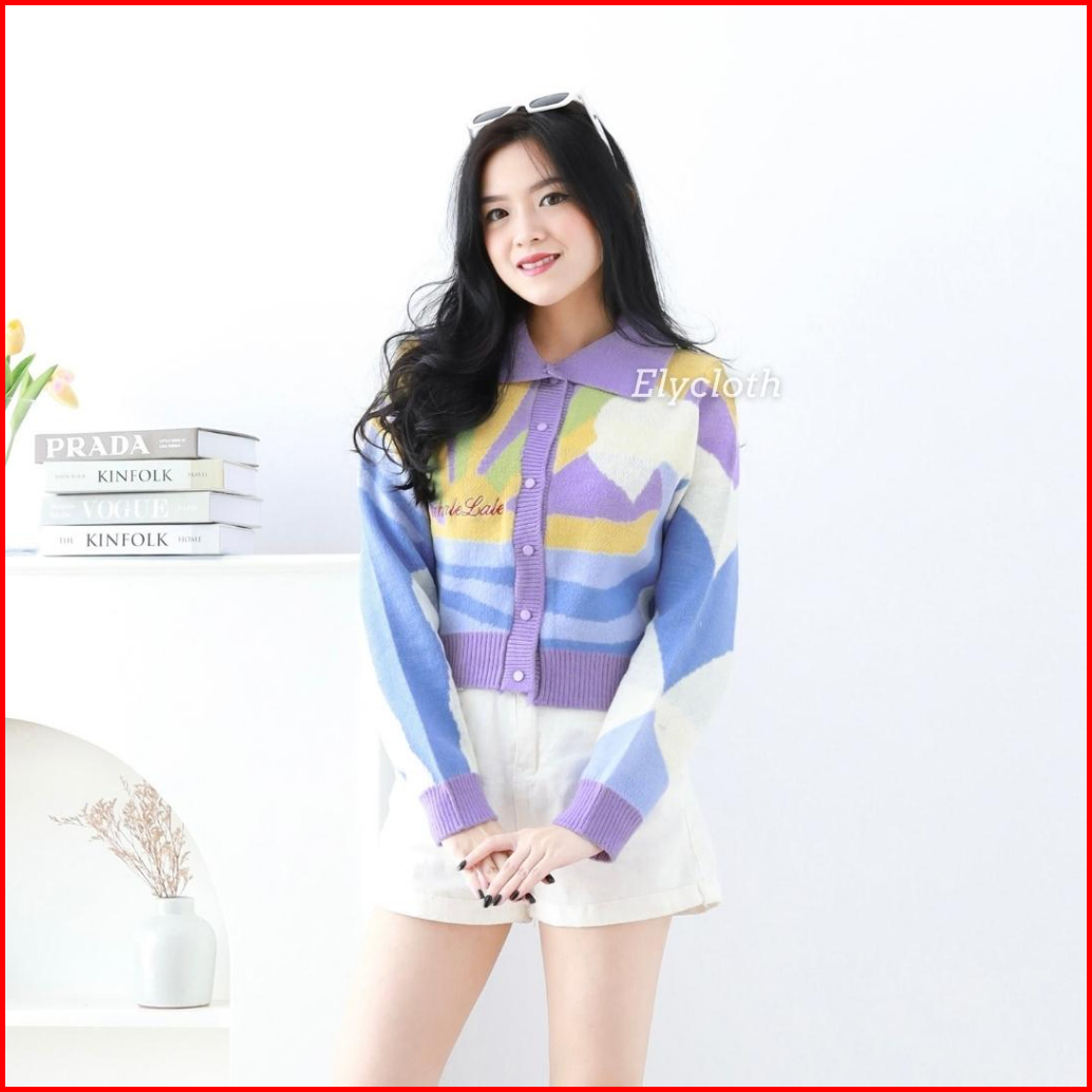 Elycloth Violet Cardigan Cardigan Rajut Wanita Premium Knit