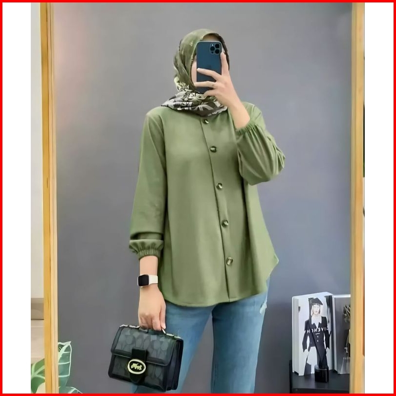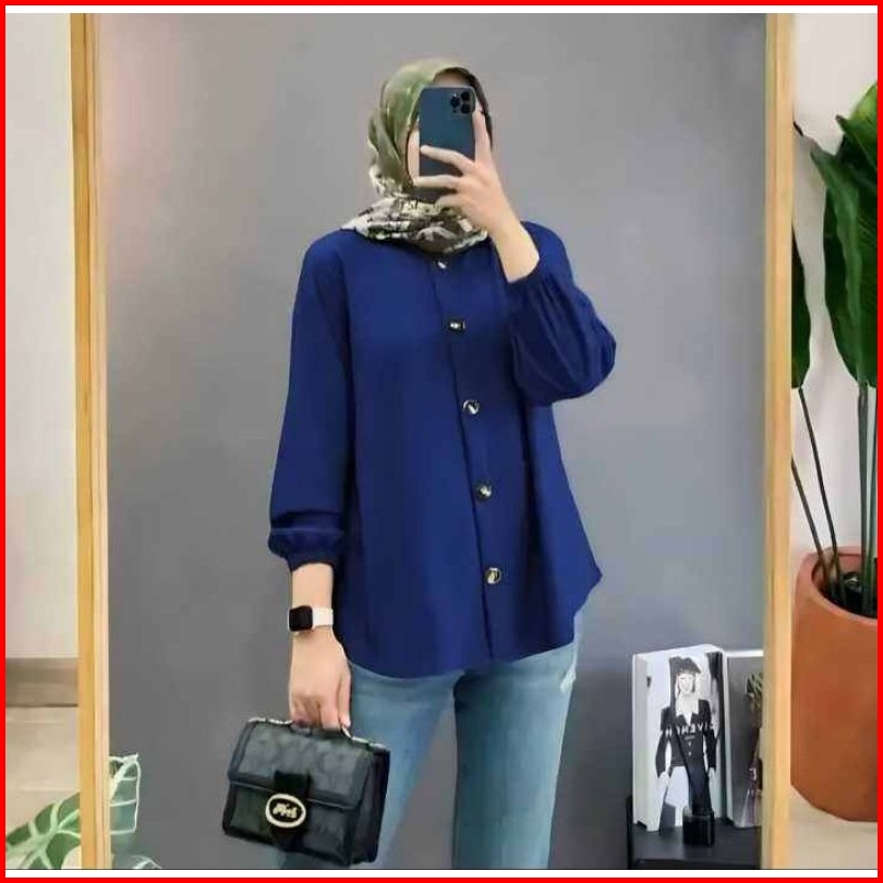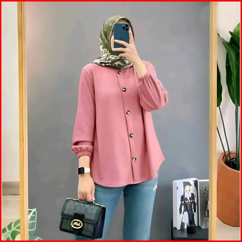 Baju Atasan Wanita Jumbo Lengan Karet Kemeja Crinkle Airflow