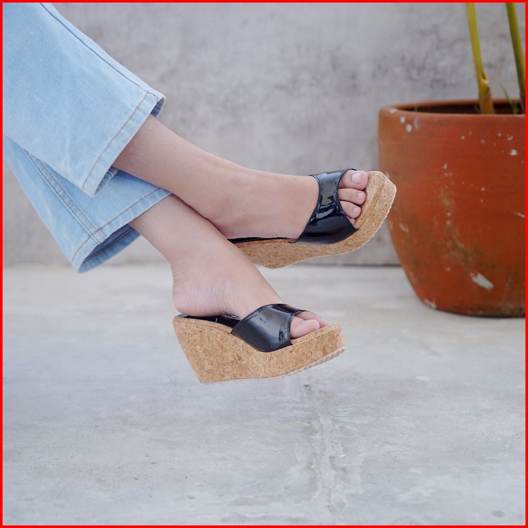 Sabiya Sendal Wedges Wanita Selop Polos Hagia-02 Tinggi 7cm