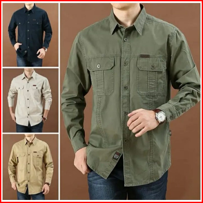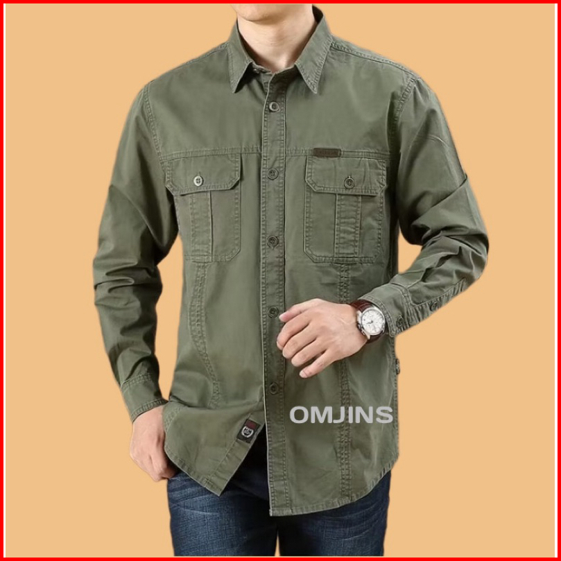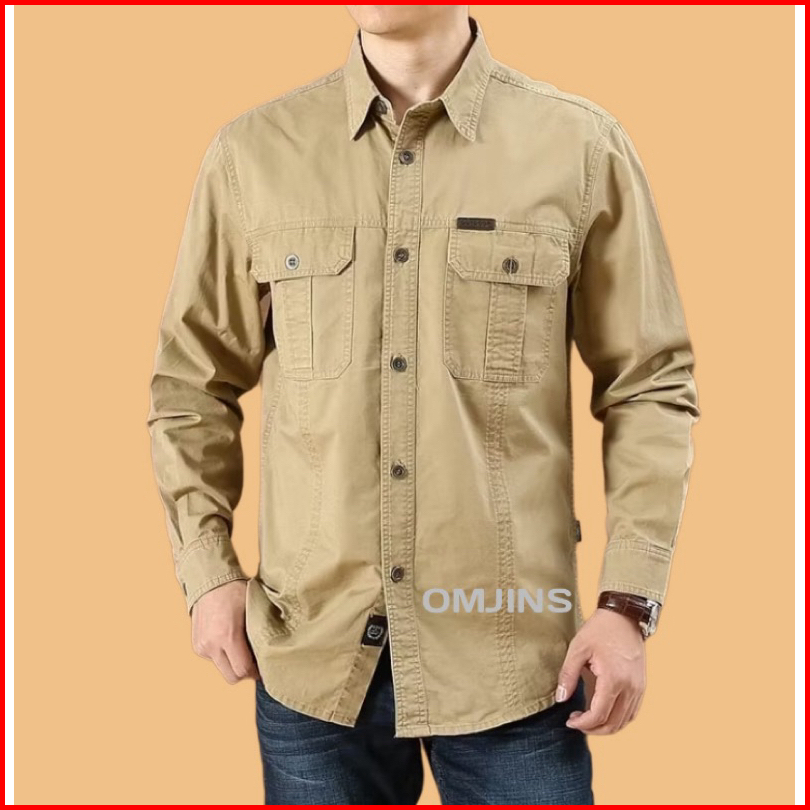 Omjins Kemeja Tactical Pria Dewasa Lengan Panjang Hem Outdoor