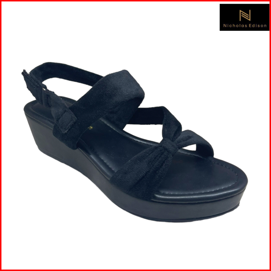 Nicholas Edison Wedge Gya Black Sandal Wedges Suede Terbaru