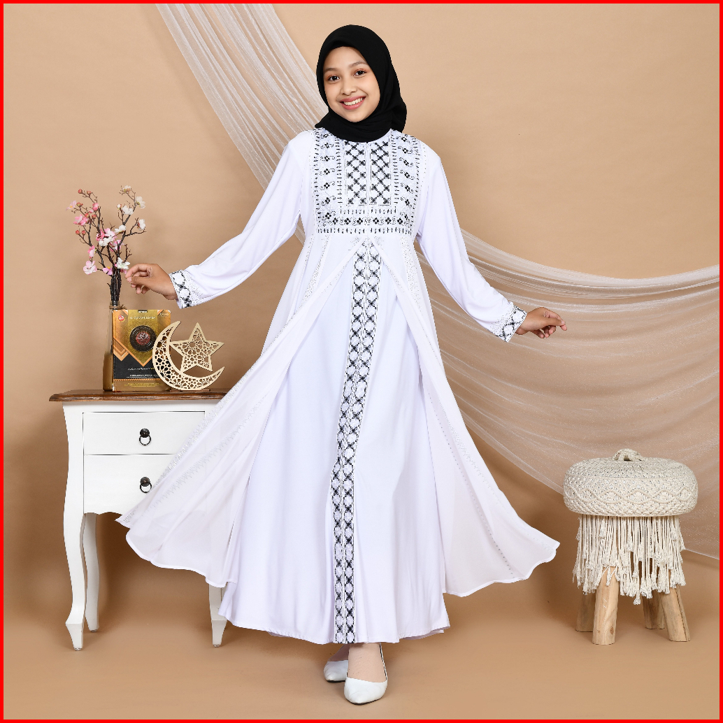 Abiyyuco Ta9020p Abaya Turkey Anak Remaja Dan Dewasa Khusus Warna Putih Gamis Turki Terbaru Mewah