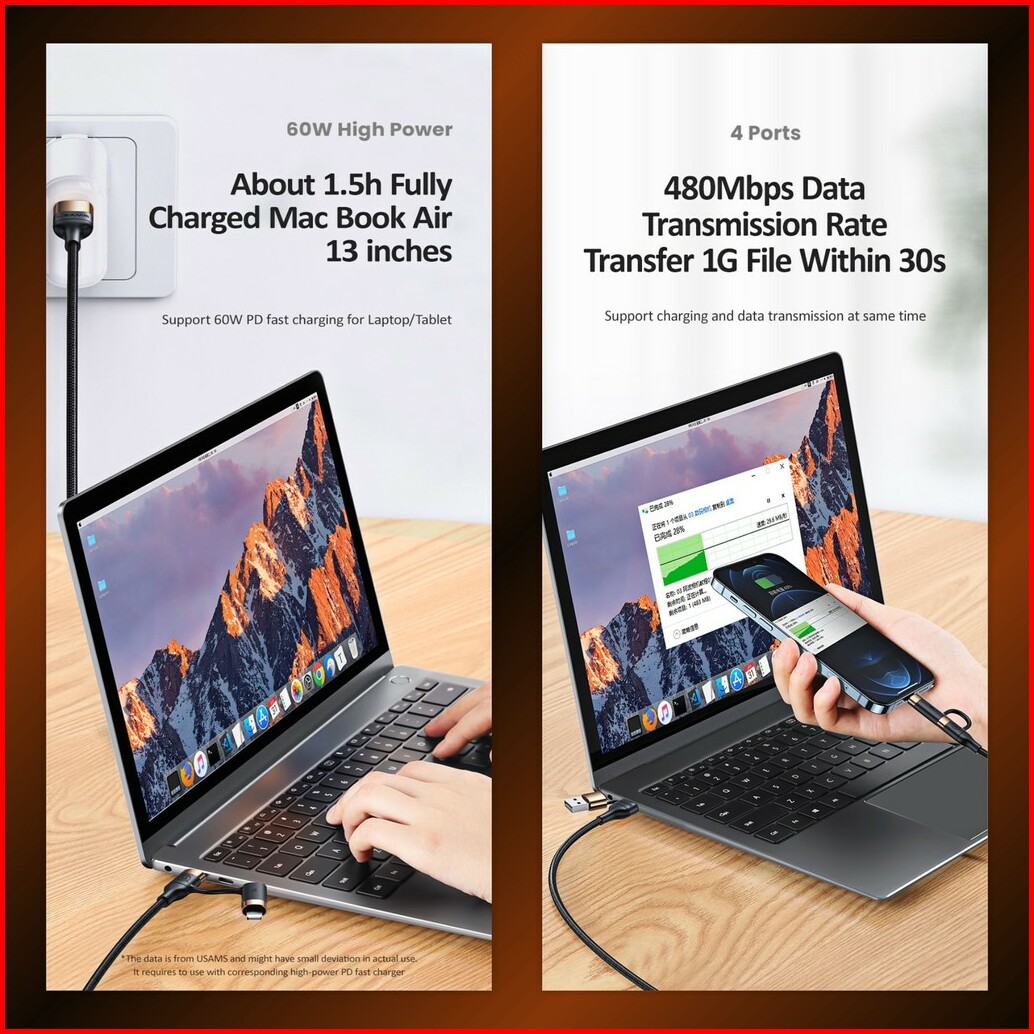 Usams U62 Kabel Data Usb-type C To Type C Lightning Pd Fast Charging