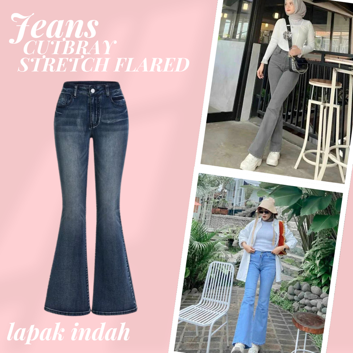 CELANA JEANS WANITA HIGH WAIST JUMBO KEKINIAN TERBARU CELANA LEVIS HIGHWAIST CUTBRAY STRETCH FLARED PREMIUM QUALITY
