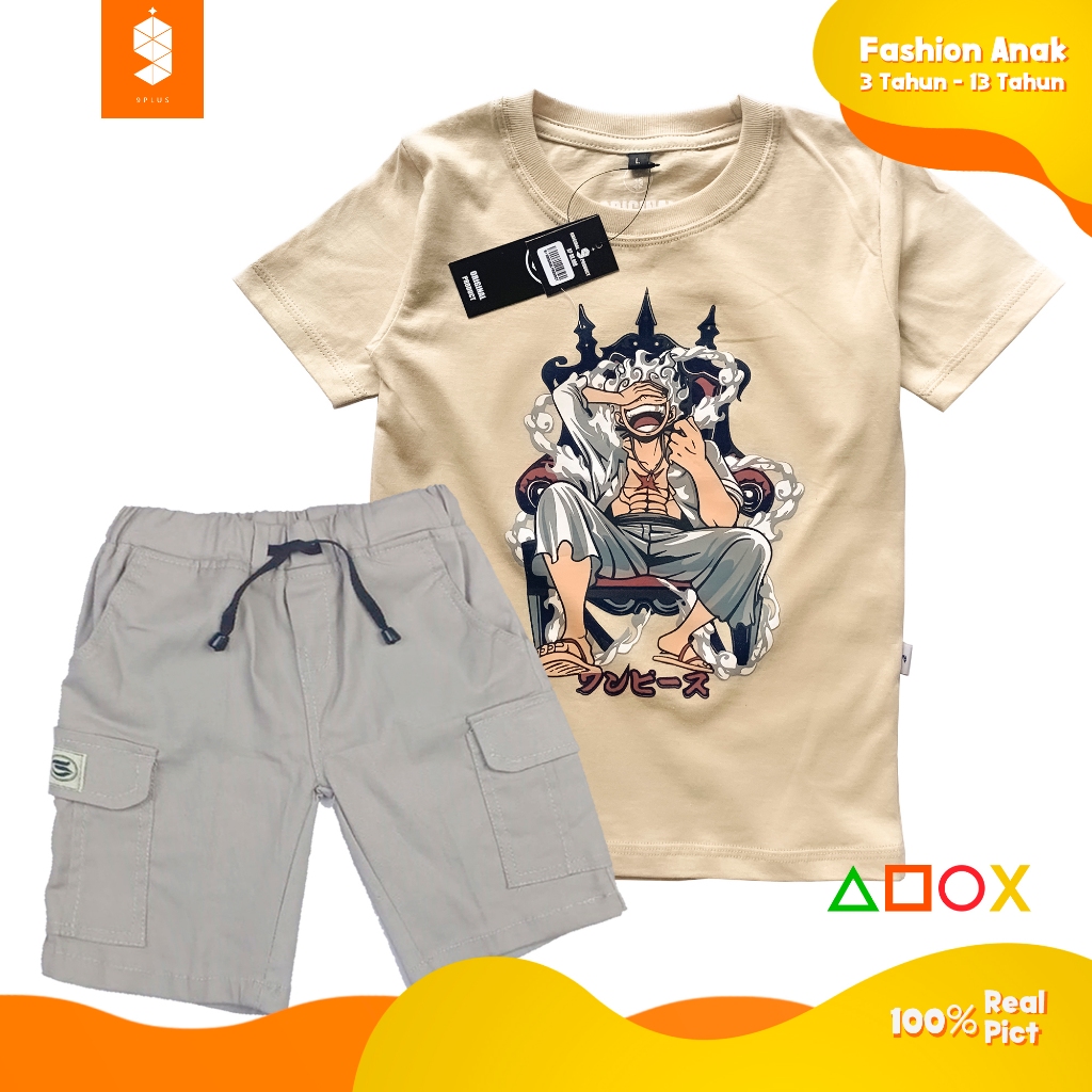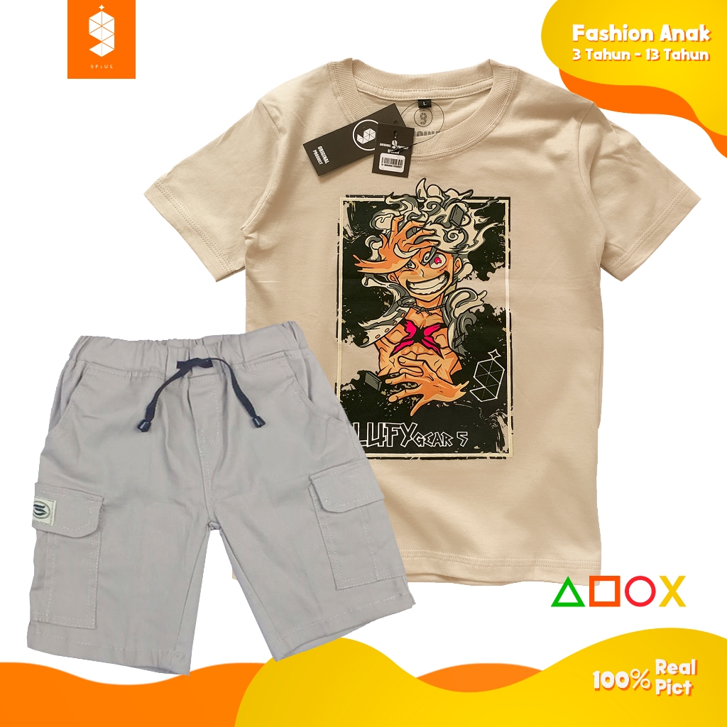 Setelan Anak Laki-Laki Dino Usia 1-12 Tahun Bahan Cotton 30s dan Celana Cargo Premium