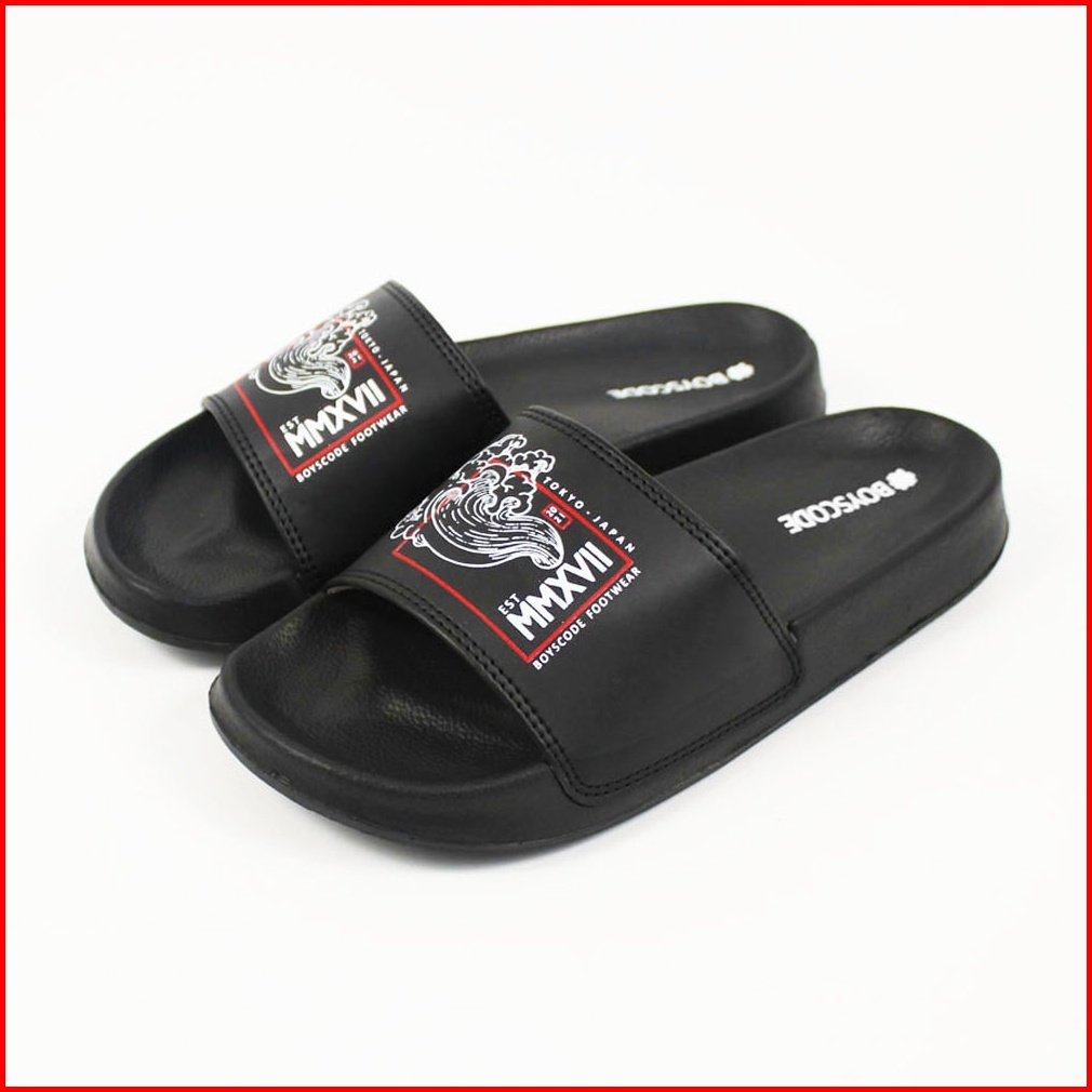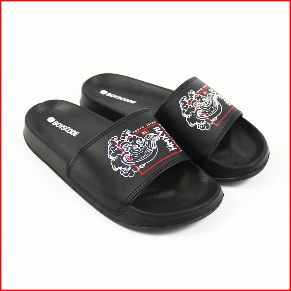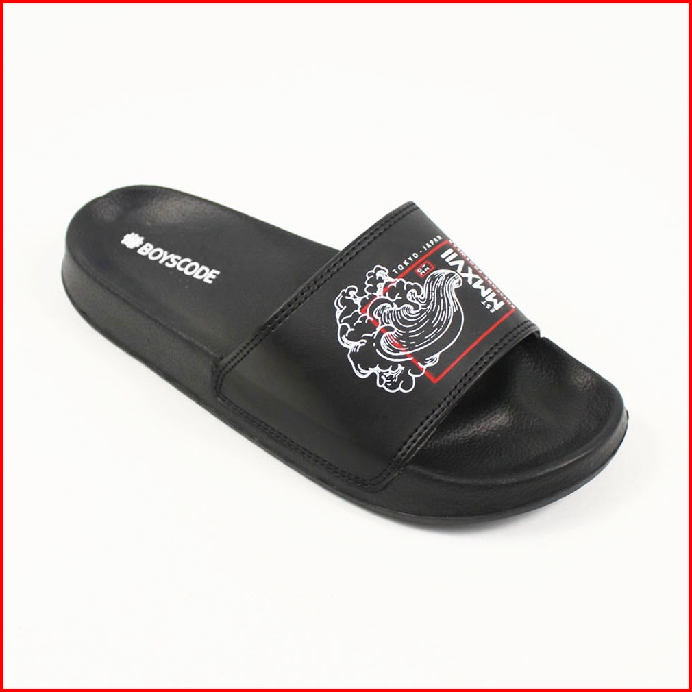 Boyscode Sendal Selop Pria Wanita Distro Japanesse Wind Black Sendal Slip On Pria Sendal Slide Pria