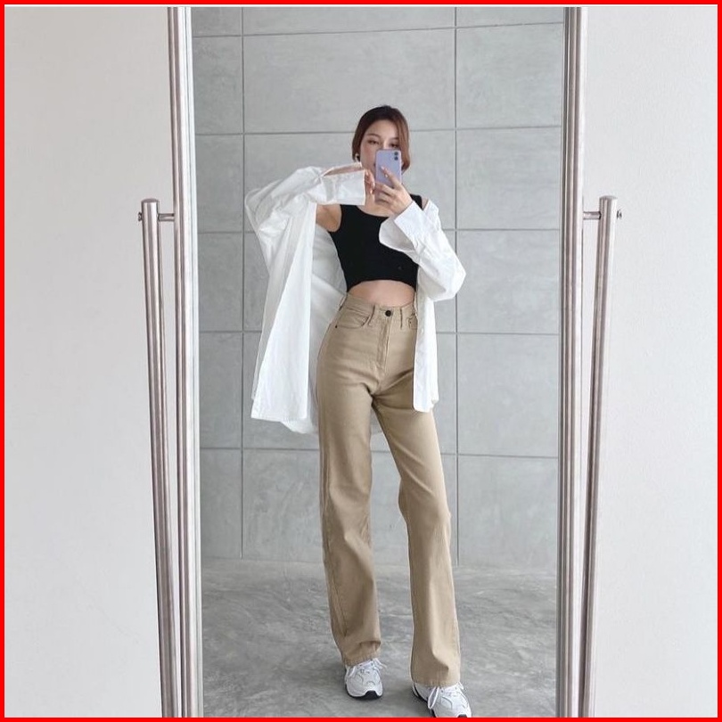 Highwaist Kulot Jeans Wanita Loose Coklat