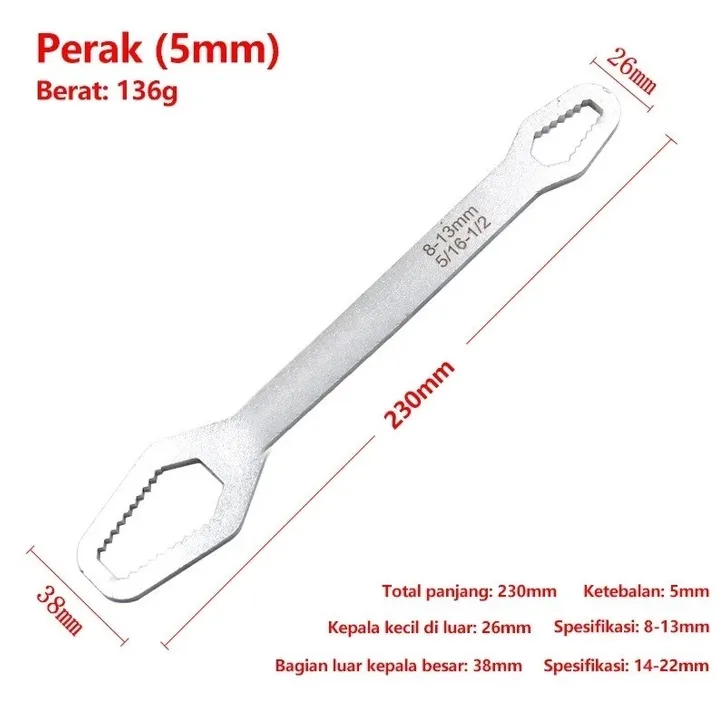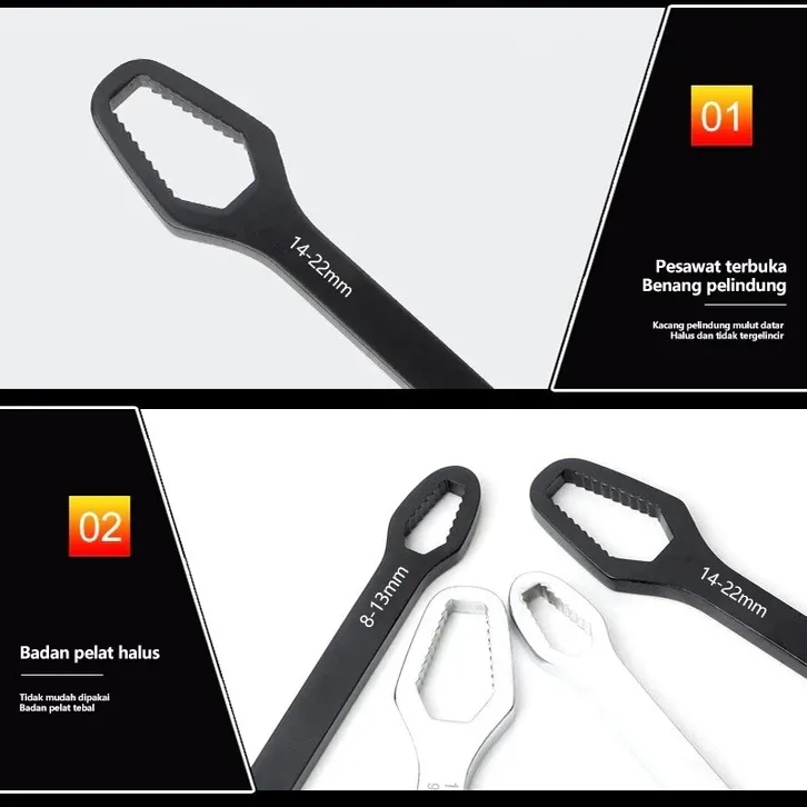 KUNCI RING UNIVERSAL WRENCH DOUBLE-HEAD ADJUSTABLE 8-22MM RATCHET SPANNER KENCANGKAN SEKRUP DENGAN BERBAGAI DIAMETER