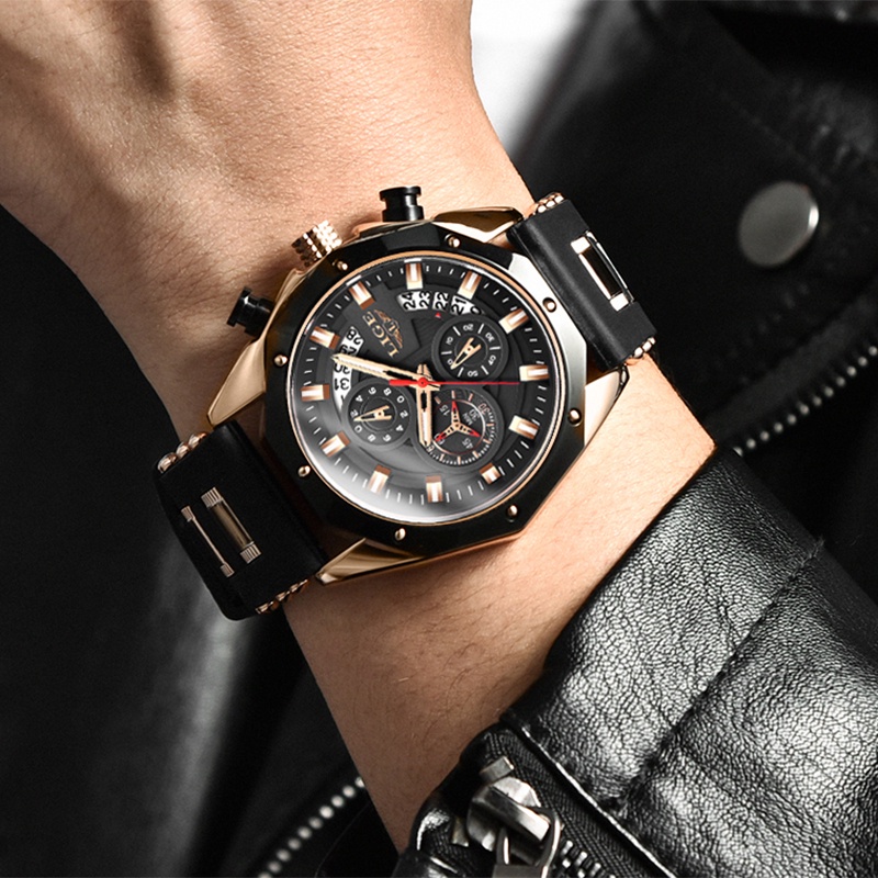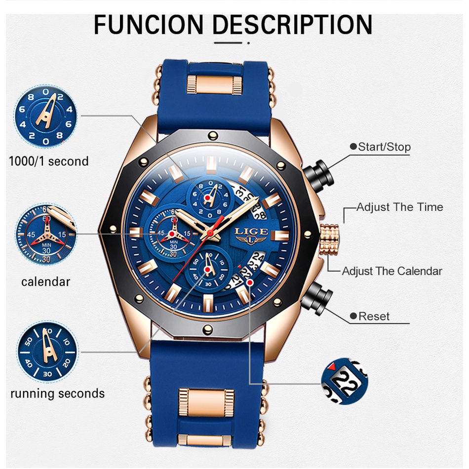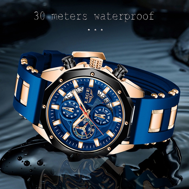 LIGE Terbaru Jam Tangan Pria Original Multi Fungsi Anti Air Kalender Kronograf Sport Jam Tangan + Kotak