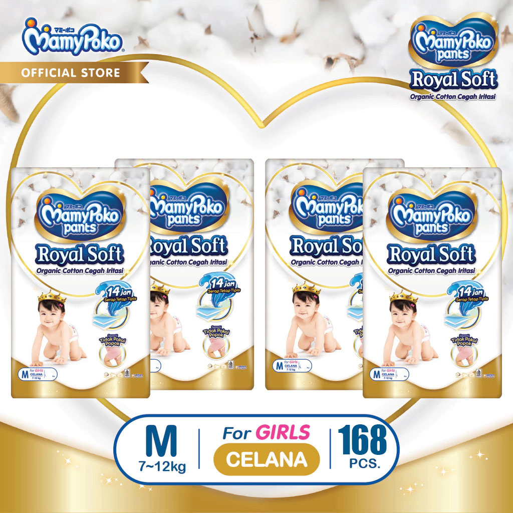 Paket 4 Packs Mamypoko Pants RoyalSoft Boy / Girl M42 x4 Ball