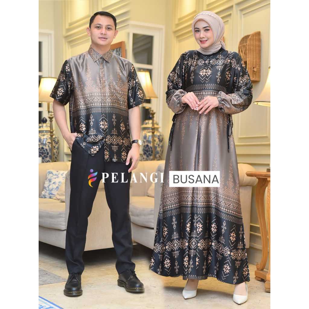 BAJU COUPLE PASANGAN Couple Dress SYAMEERA Bahan Silk Premium Set Pasangan Atasan kemeja | Gamis Motif Elegan silk Premi