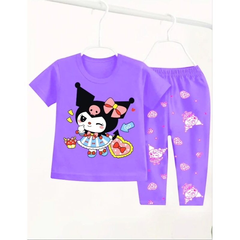 setelan kuromi piyama anak perempuan usia 2-6 tahun