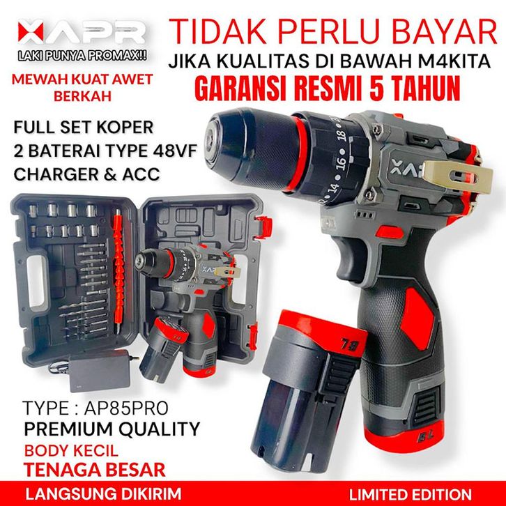 APR RAJA BOR impact drill BRUSHLESS TYPE AP85 pro 10mm keyless auto lock 2baterai mesin bor besi kayu driver sekrup dril